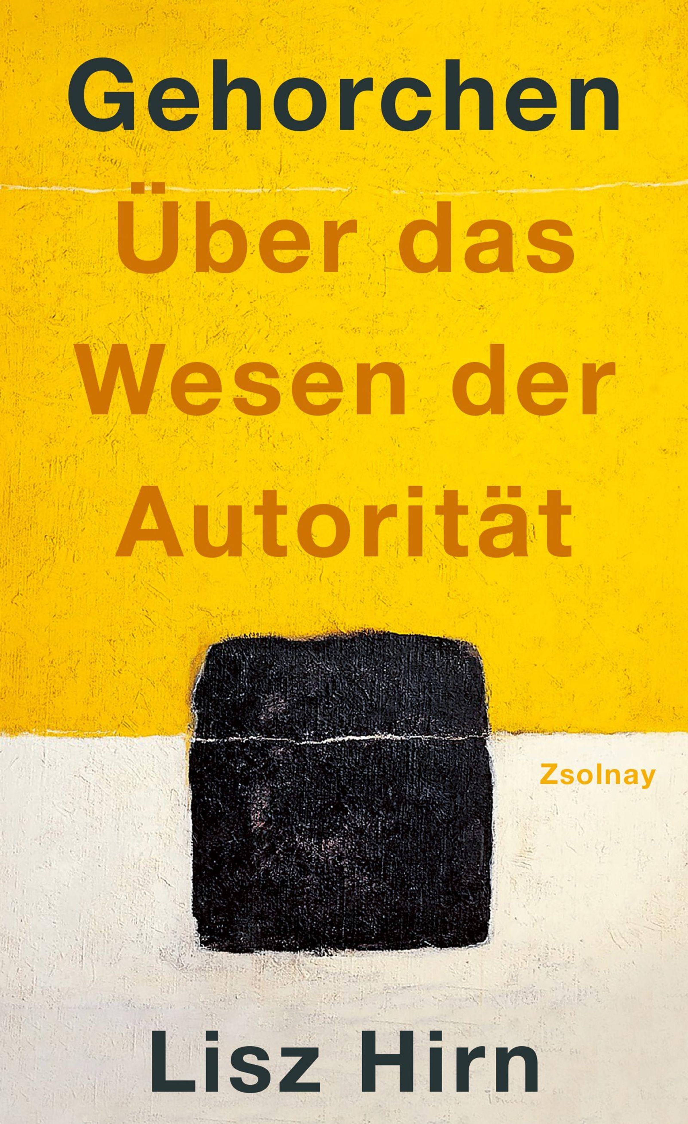 "Gehorchen: Über das Wesen der Autorität" von Lisz Hirn. Gelber Hintergrund mit abstraktem Schwarz-Weiß-Muster., Buch