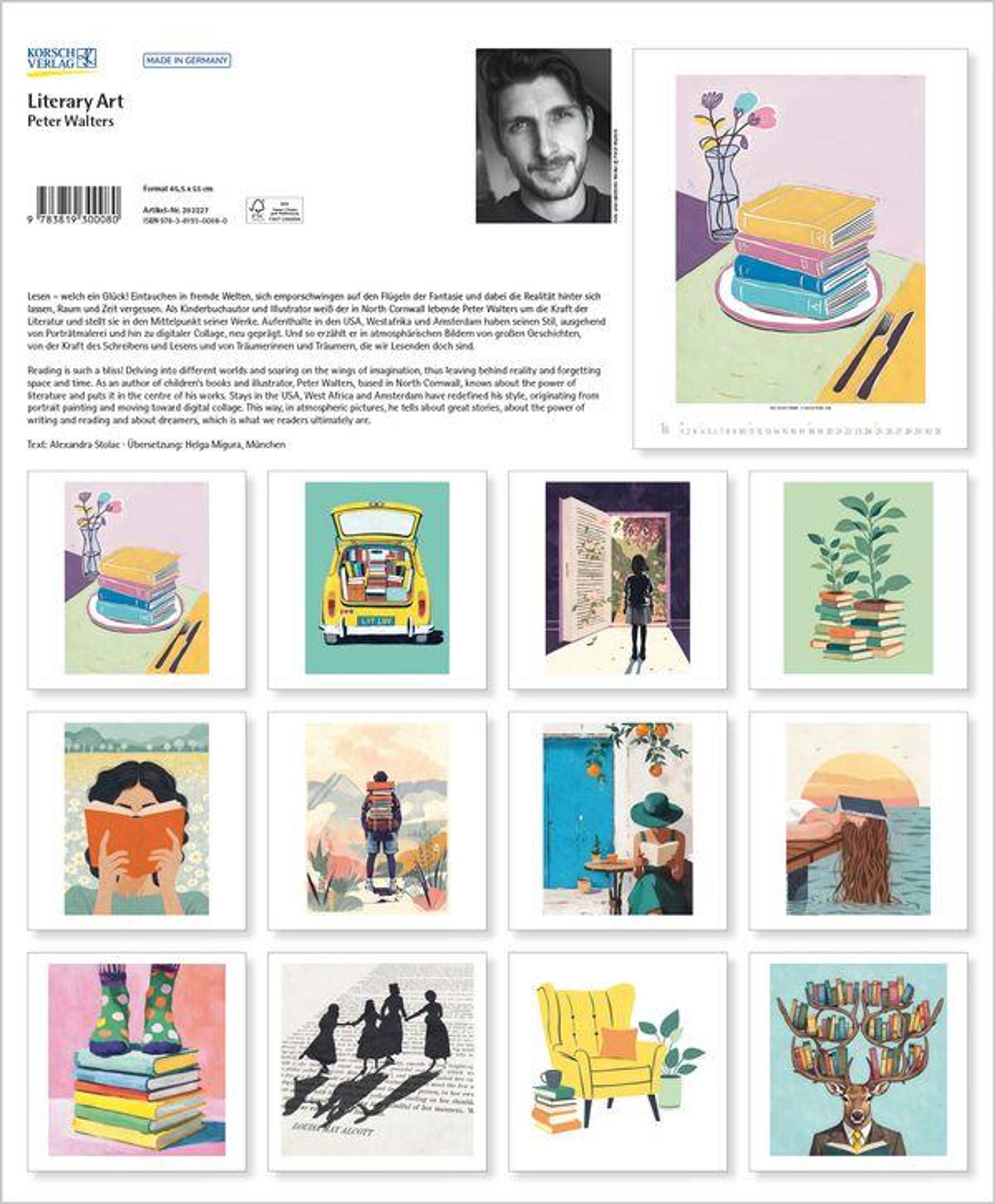 - Kunstkalender mit Bildern von Peter Walters. Großer Wandkalender mit Illustrationen rund um die Literatur und Bücher. Hochformat: 45,5x55 cm.