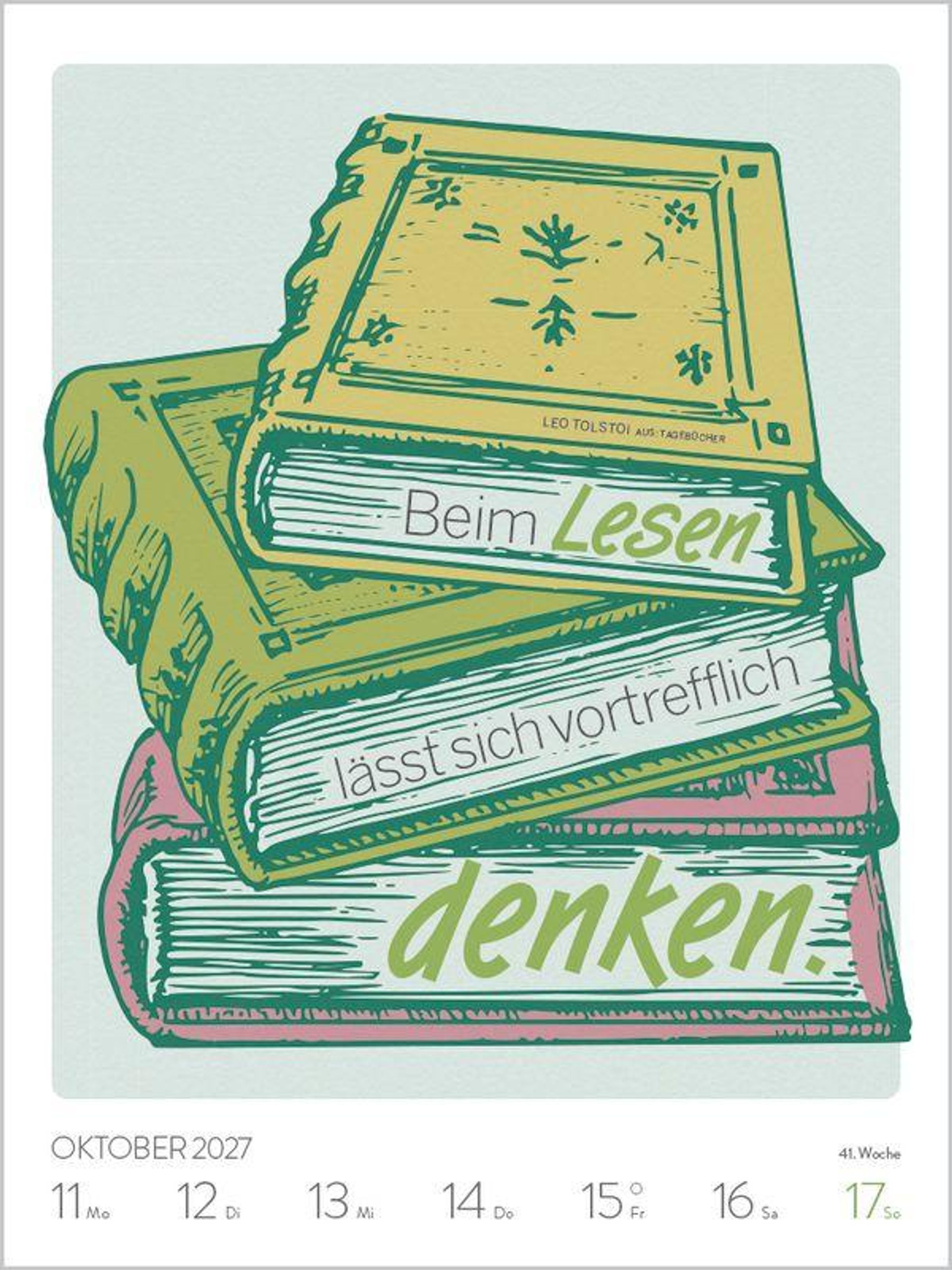 Format: 24 x 32 cm; Wochenkalender mit 53 einzigartigen Grafiken und Zitaten