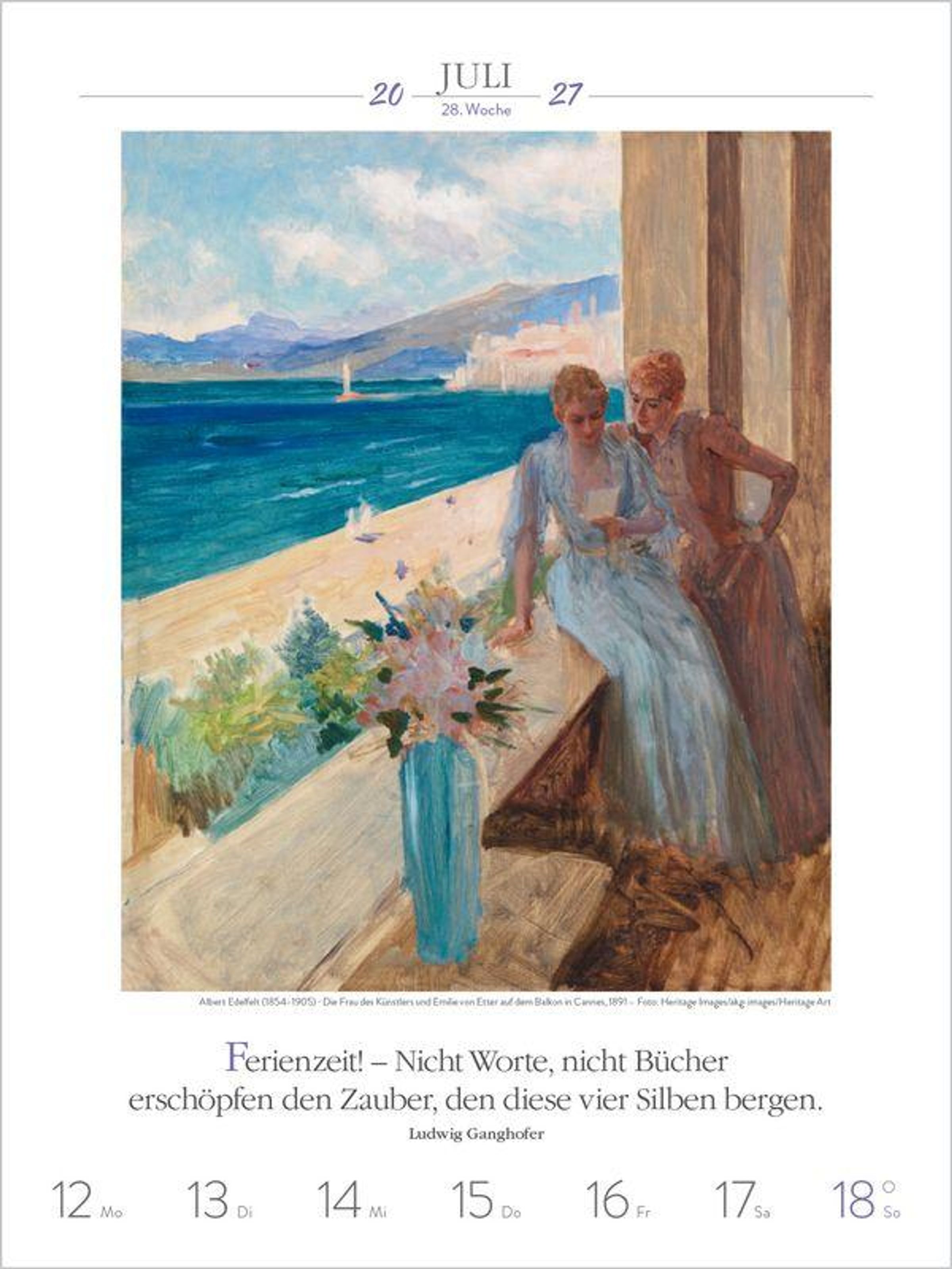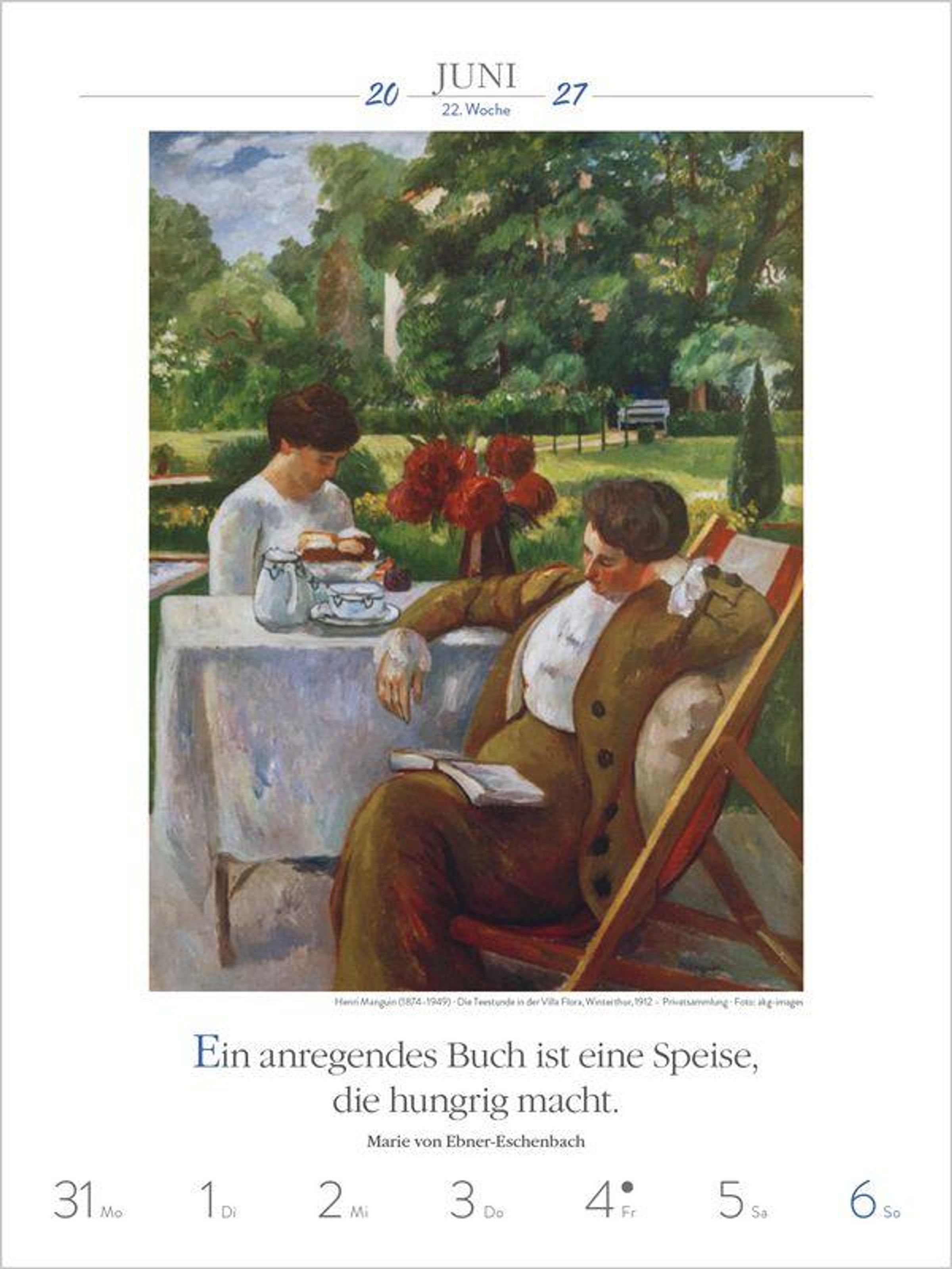 - Literarischer Wochenkalender * 1 Woche 1 Seite * literarische Zitate und Bilder * Klimaneutrale Produktion * 24 x 32 cm