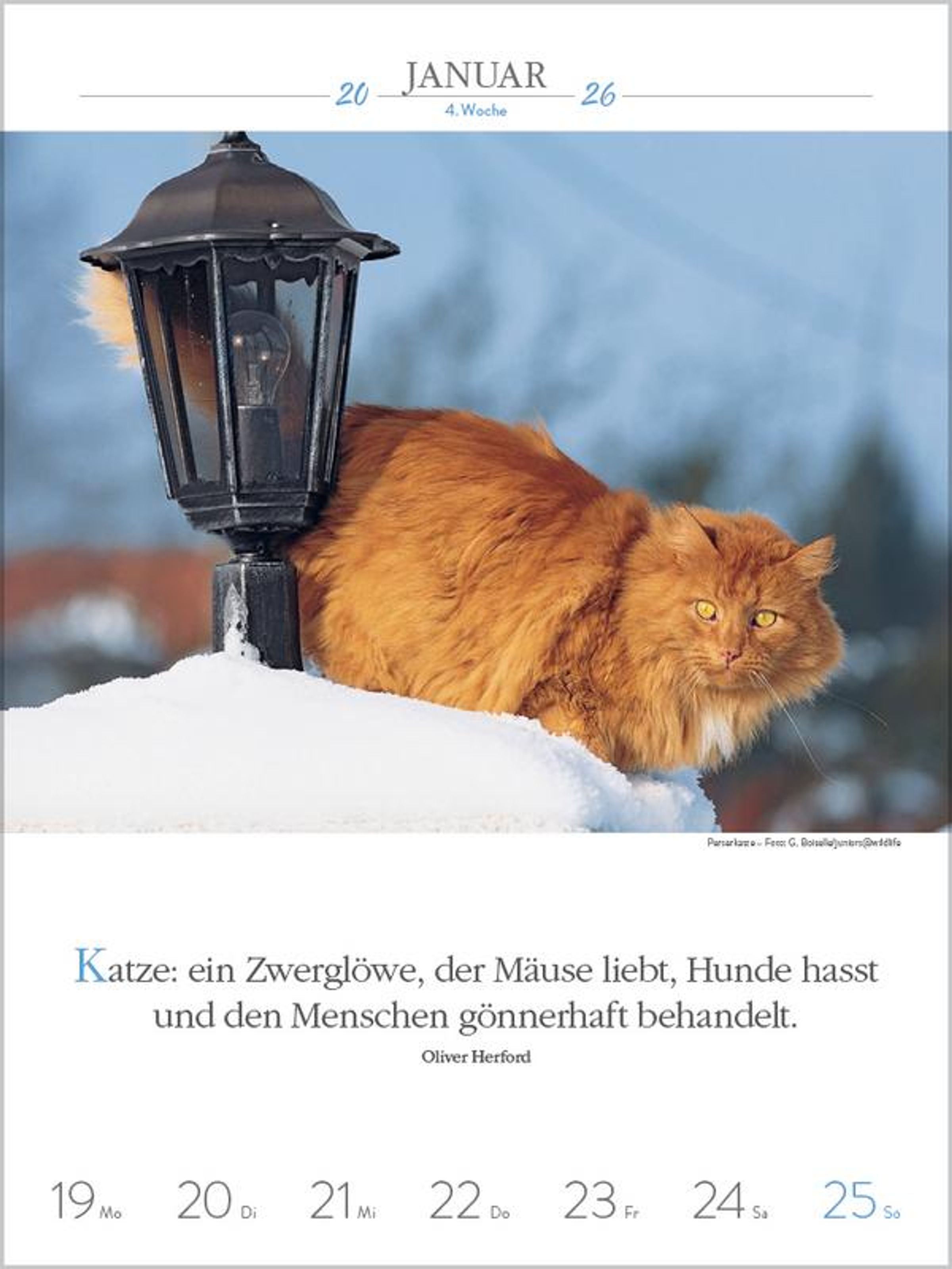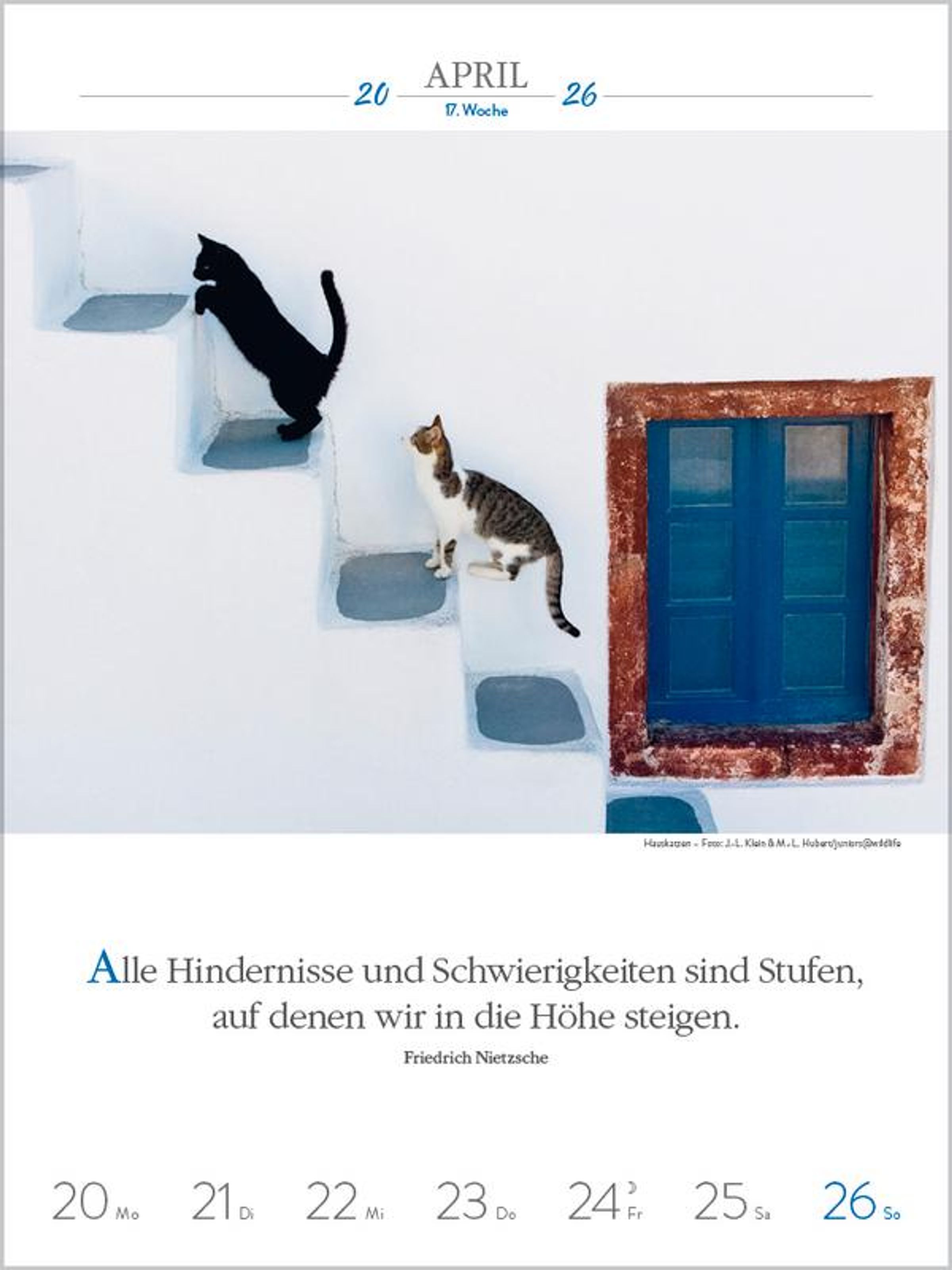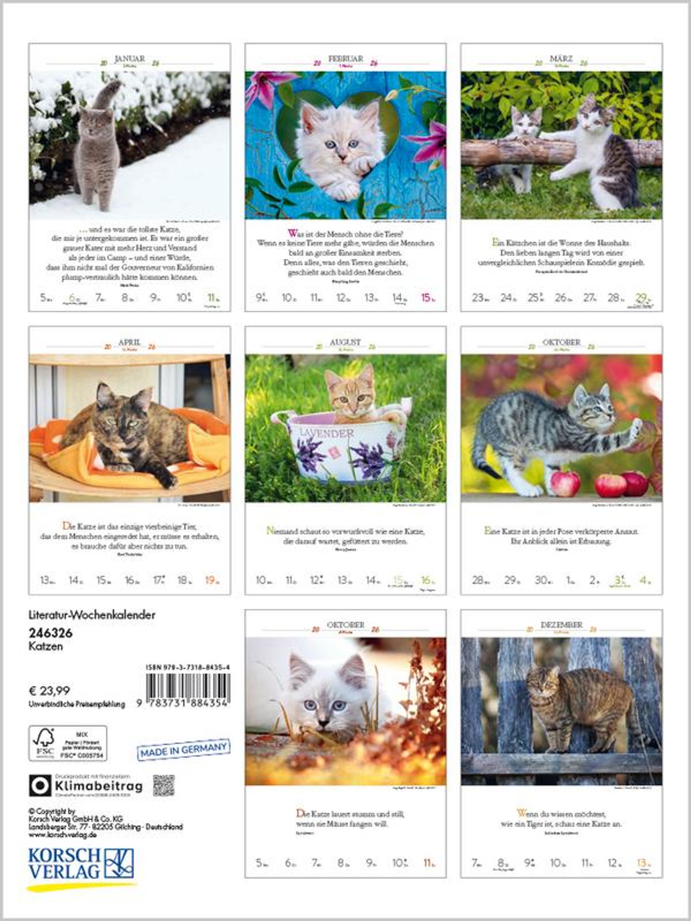 Außergewöhnliche Fotos von Katzenpersönlichkeiten, kombiniert mit den Gedanken berühmter Schriftsteller, sind Woche für Woche ein Vergnügen für alle, die Katzen lieben. Klimaneutral hergestellt auf nachhaltig produziertem Papier.