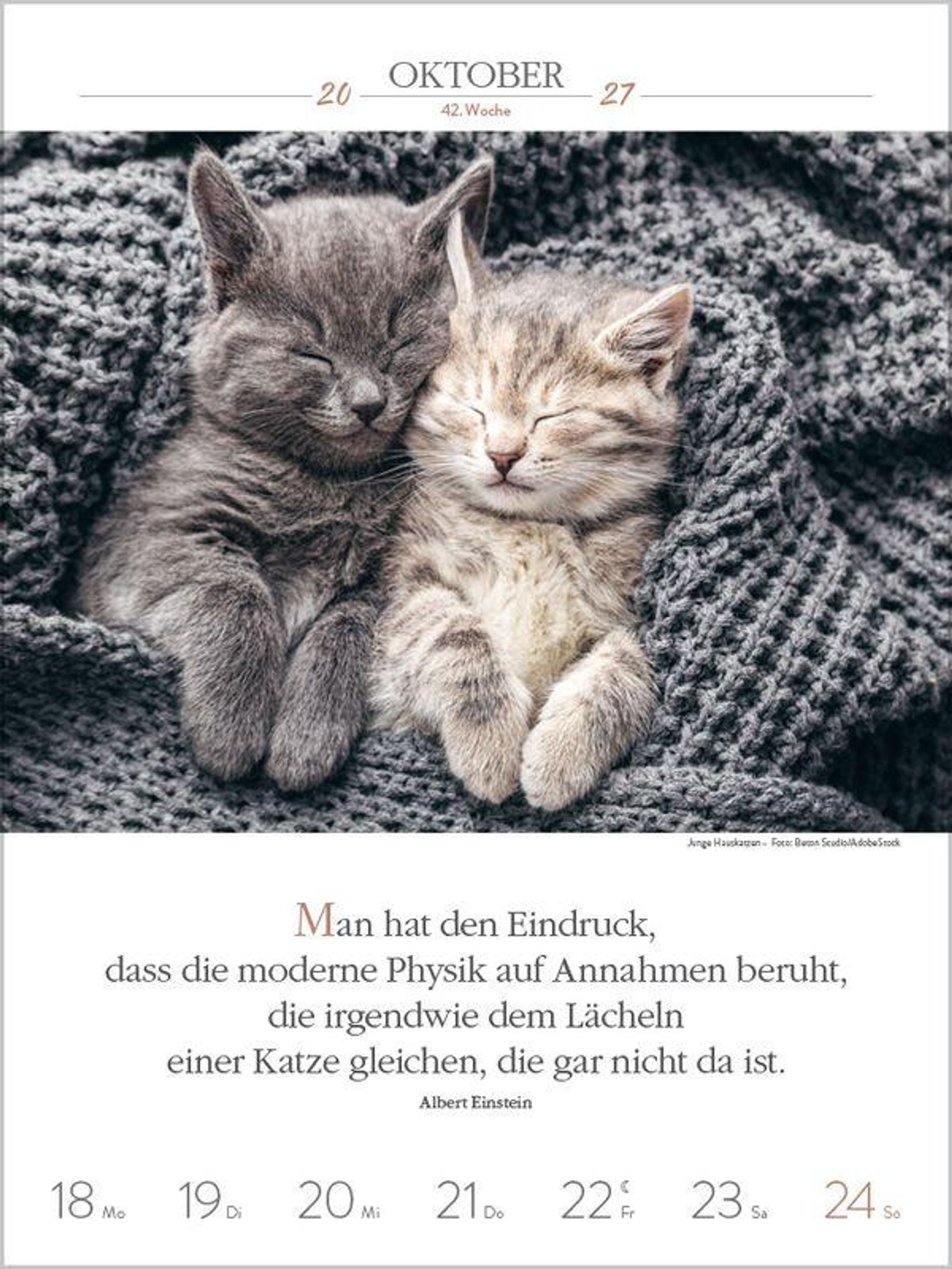 Außergewöhnliche Fotos von Katzenpersönlichkeiten, kombiniert mit den Gedanken berühmter Schriftsteller, sind Woche für Woche ein Vergnügen für alle, die Katzen lieben. Klimaneutral hergestellt auf nachhaltig produziertem Papier.