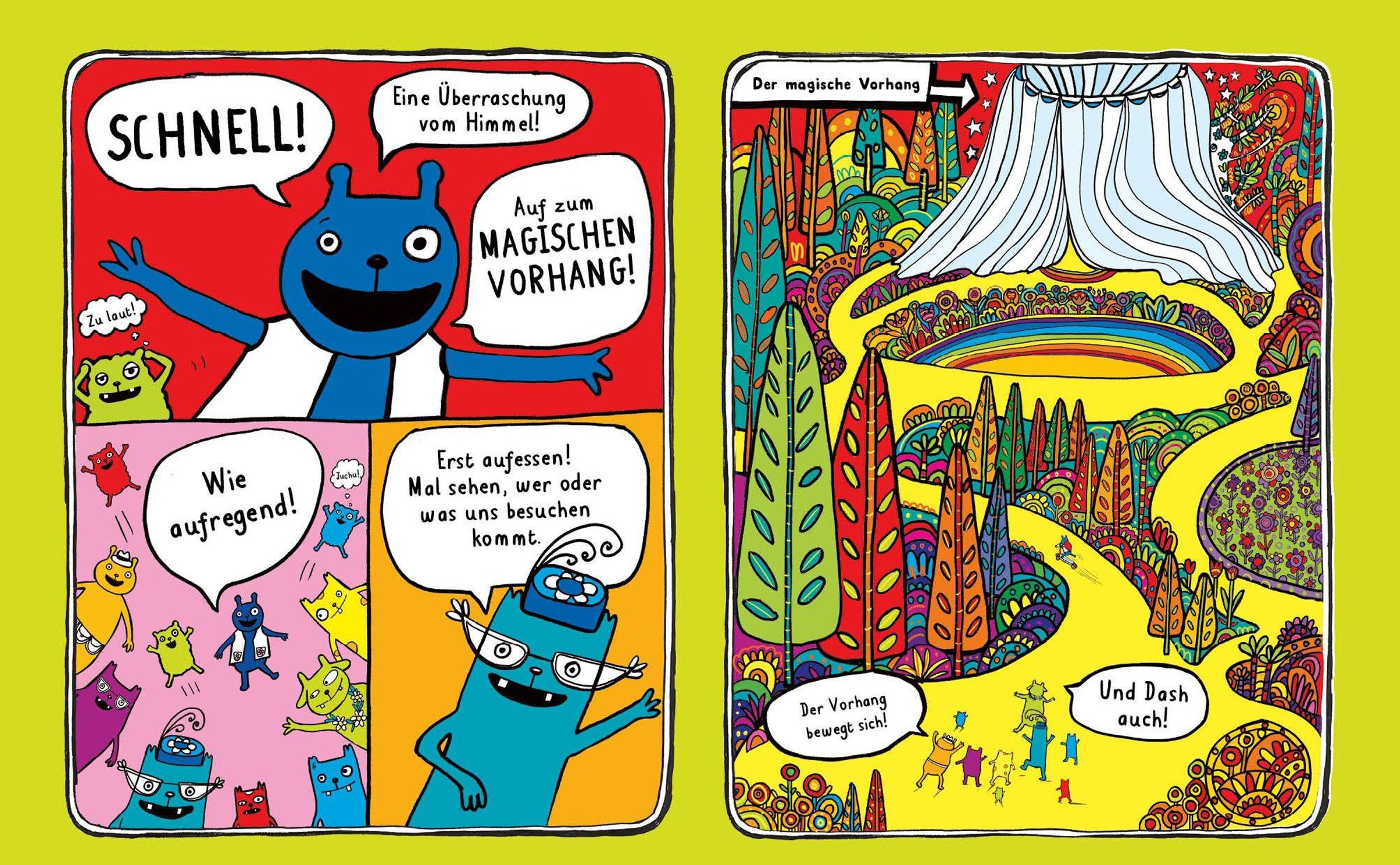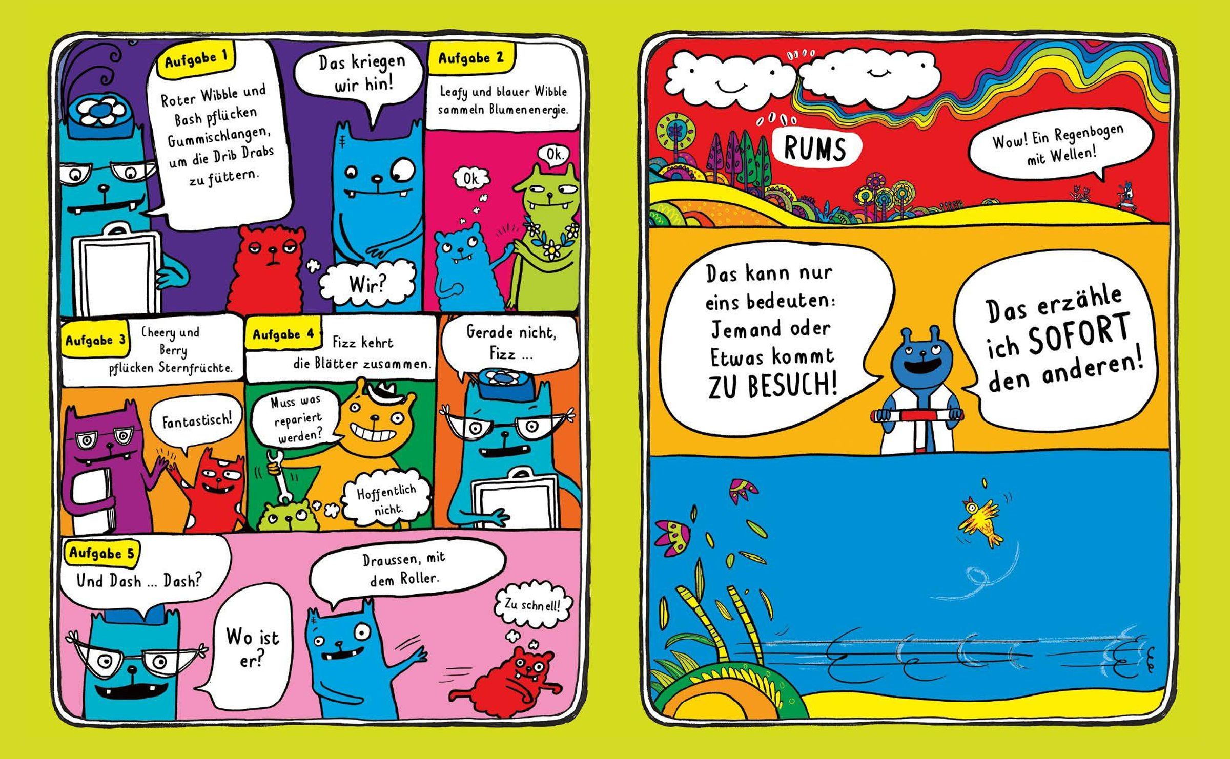Begleite die Mubbles und Wibbles auf ihr erstes Abenteuer und finde heraus, was hinter dem magischen Vorhang ist und die Grinseinsel auf den Kopf stellt. Dieser Kinder-Comic ist der perfekte Lesespaß zum gemeinsamen Vorlesen oder Selberlesen mit seinen farbenfrohen Illustrationen , dem lustigen Humor und jeder Menge Impulse zum Mitsingen und Tanzen!