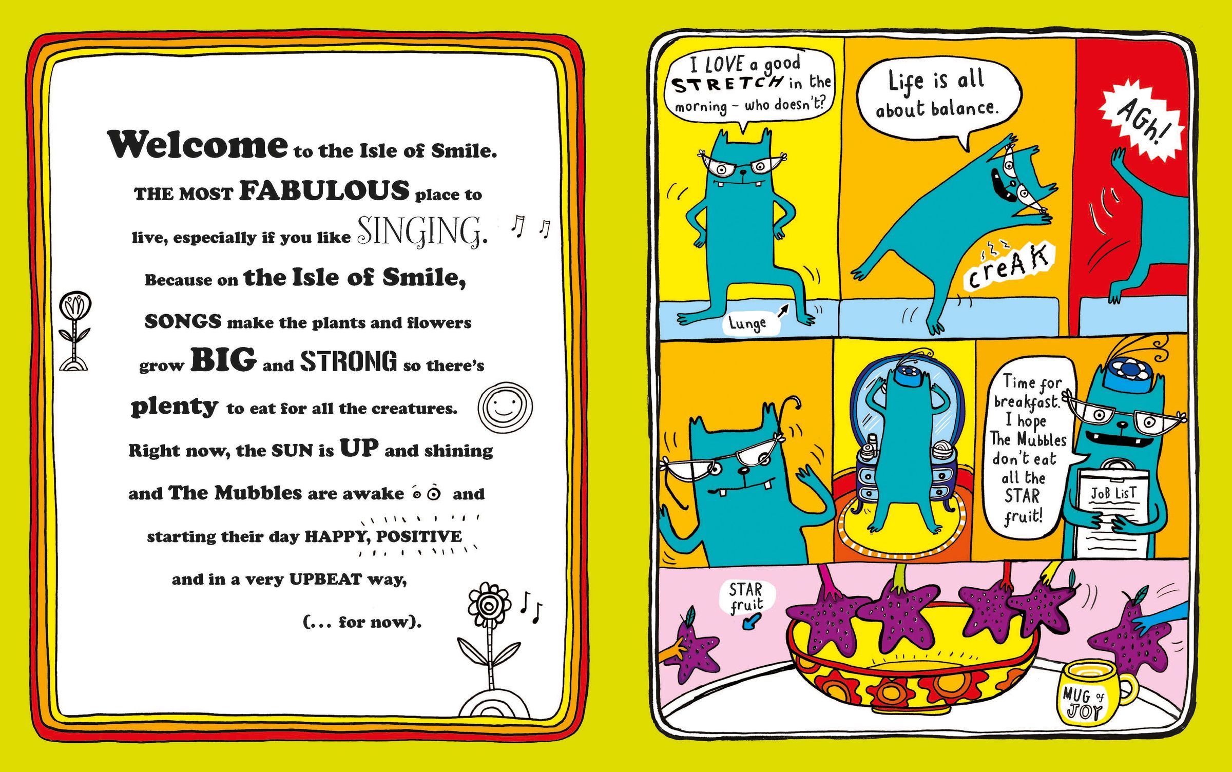 Welcome to the Isle of Smile - home of The Mubbles, where the beautiful island runs on SUN, WIND and FLOWER POWER. Like the Wibbles of Wobble mountain, the Earworms and the one-eyed Drib Drabs, everyone on the Isle of Smile lives in perfect harmony - most of the time. Until the Clouds of Joy BUMP together making a wonky rainbow that means one thing: someone or something is coming to VISIT.