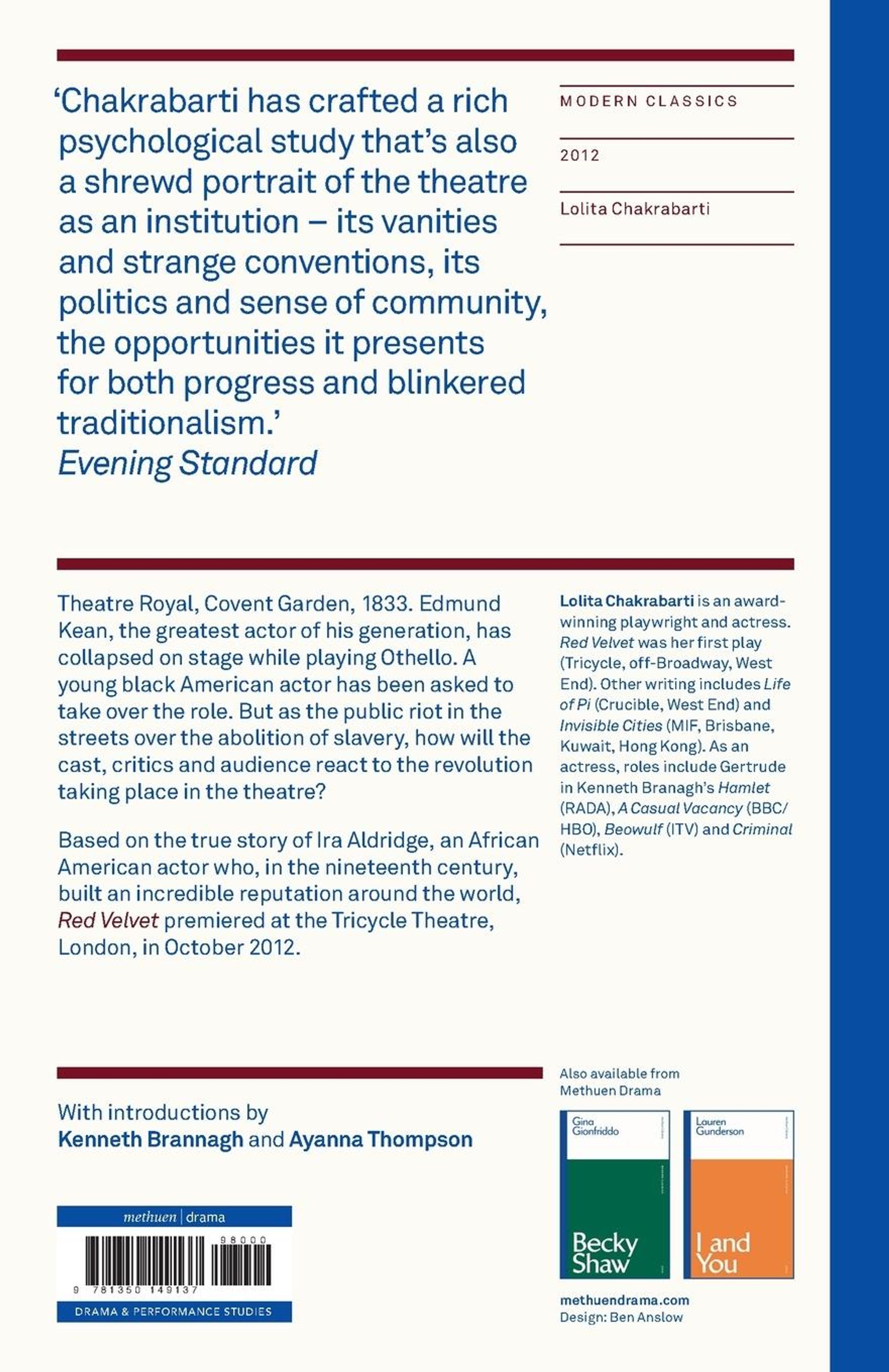 Based on the true story of Ira Aldridge, an African-American actor who, in the nineteenth century, built an incredible reputation around the world. Red Velvetpremiered at the Tricycle Theatre, London, in October 2012.