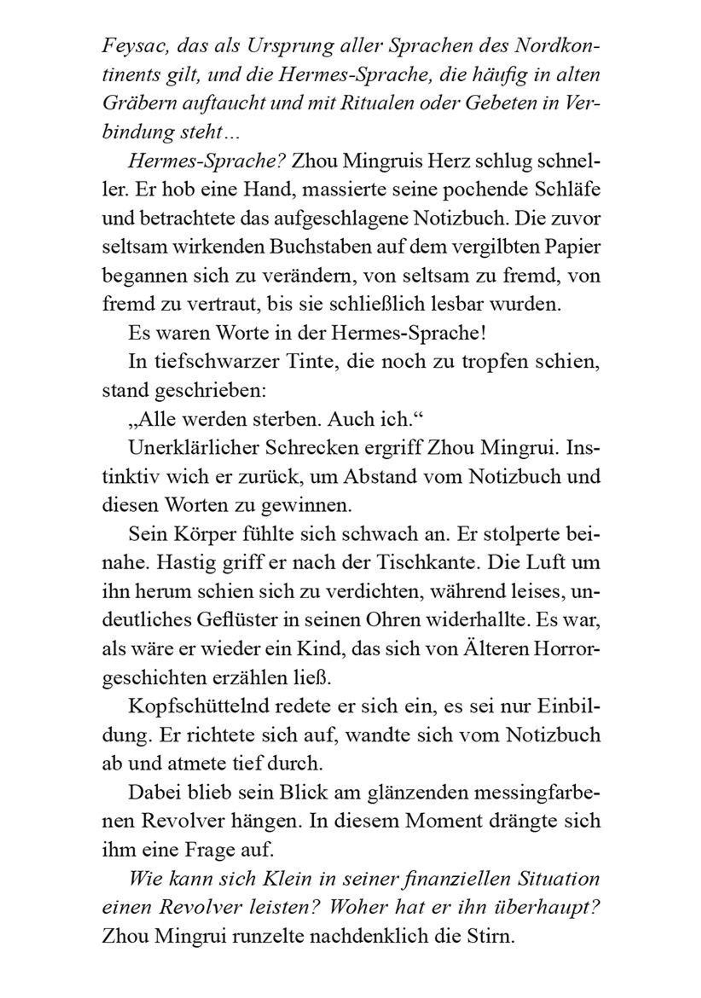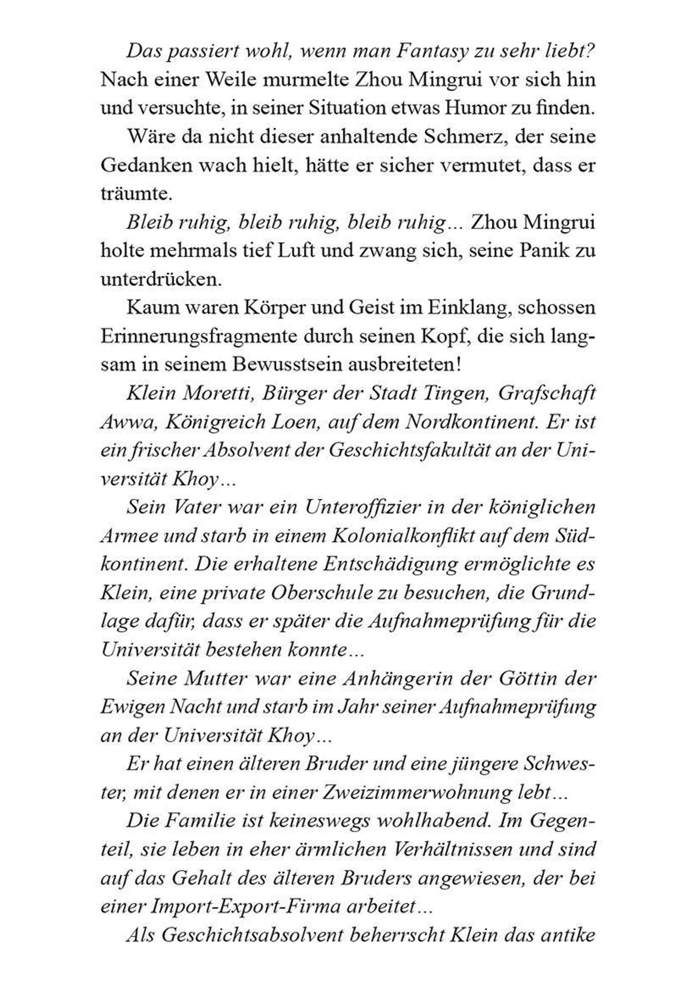 Ein Mann aus unserer Welt erwacht im Körper des Geschichtsstudenten Klein Moretti - wenige Augenblicke, nachdem dieser sich das Leben genommen hat. Vor ihm liegt ein Notizbuch mit unheilvollen Worten: "Alle werden sterben. Auch ich." Gefangen in einer Welt, die dem viktorianischen Zeitalter gleicht, sucht er verzweifelt nach Antworten und einem Weg zurück. Doch jede Wahrheit, die er lüftet, zieht ihn tiefer in den Abgrund, denn sein größter Feind ist nicht die Welt, sondern das, was in ihm erwacht. Vor oder was ist das Geflüster, das im Nebel auf ihn wartet?