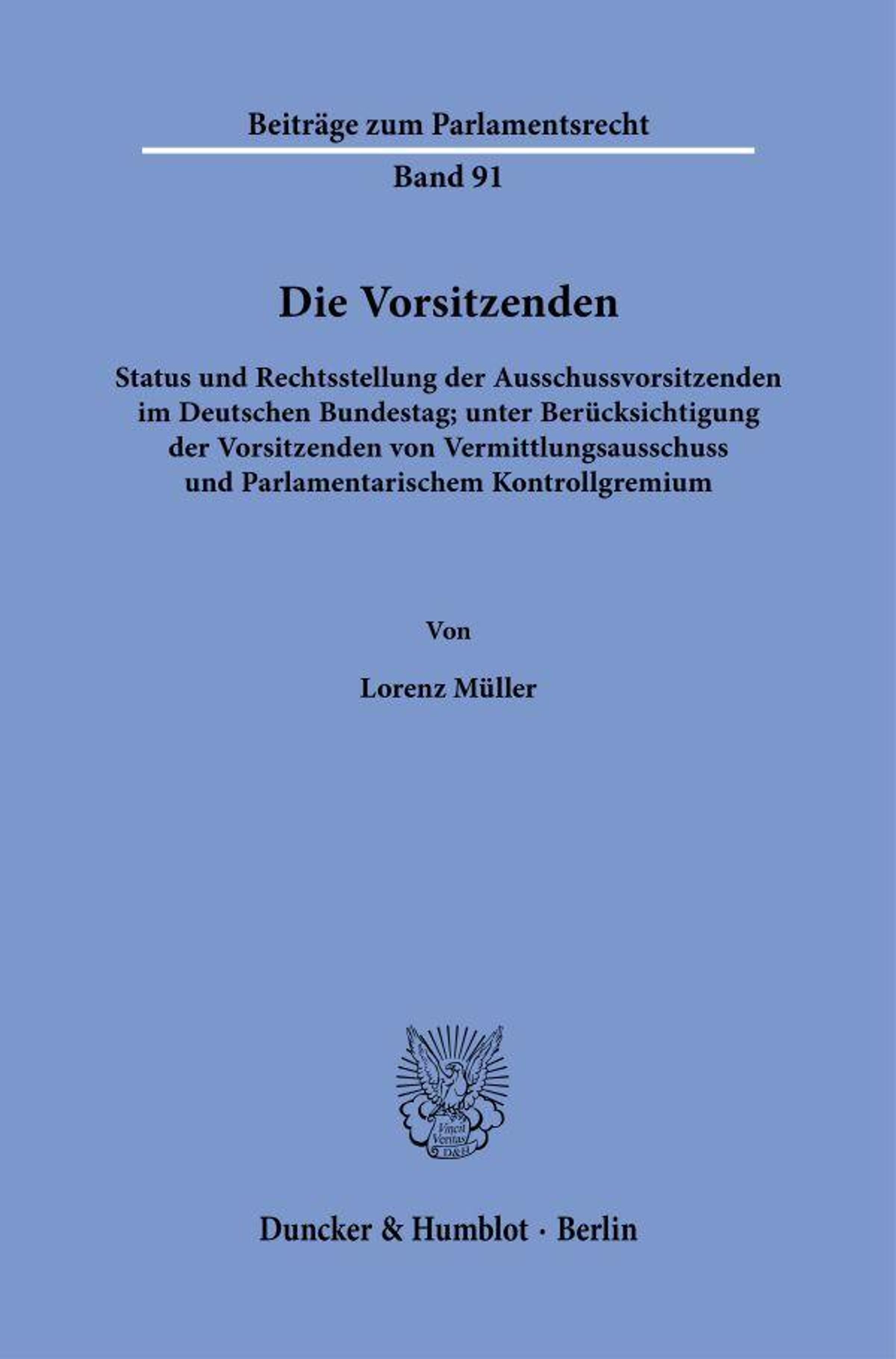 - Status und Rechtsstellung der Ausschussvorsitzenden im Deutschen Bundestag; unter Berücksichtigung der Vorsitzenden von Vermittlungsausschuss und Parlamentarischem Kontrollgremium
