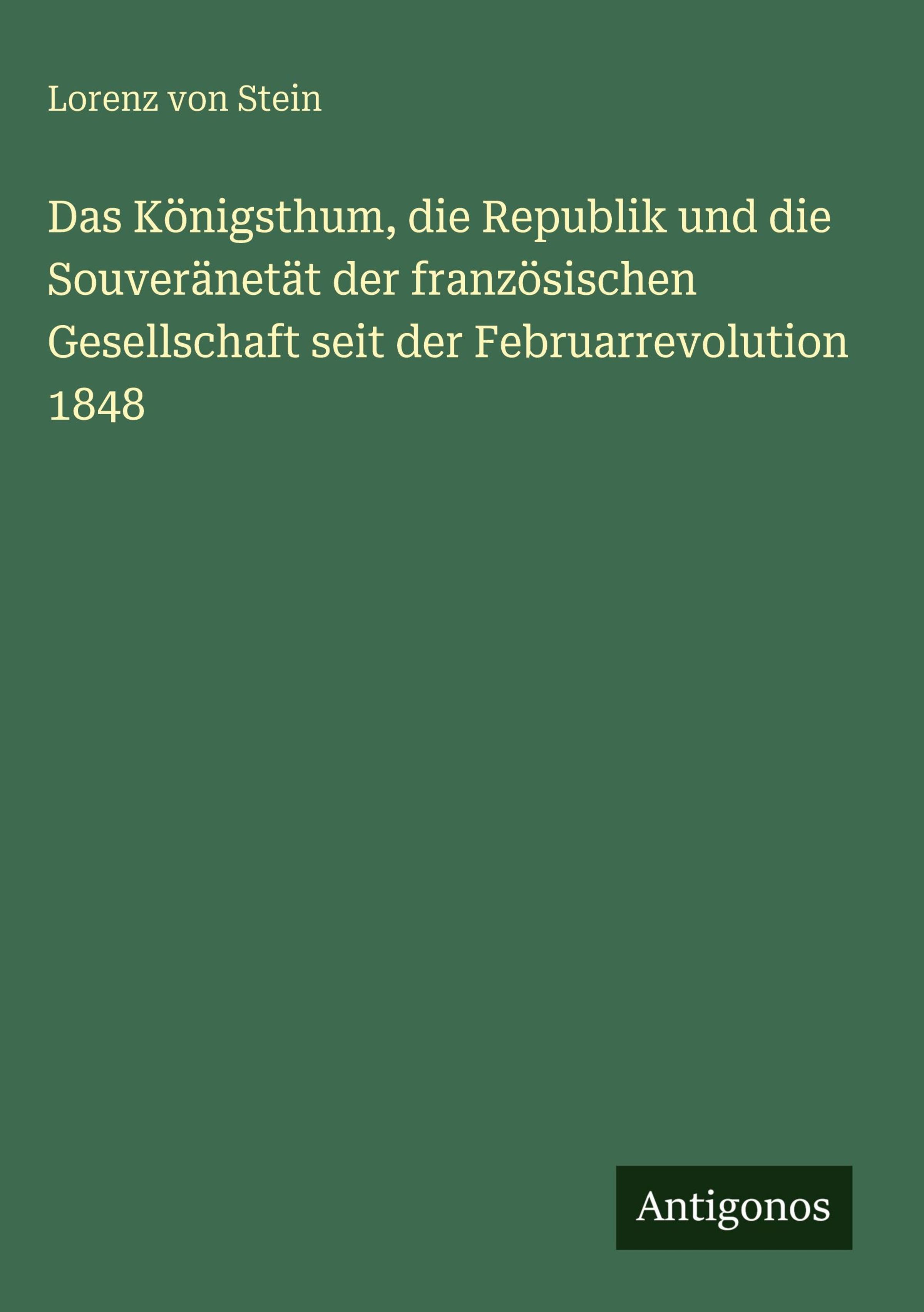 Lorenz Von Stein: Das Königsthum, die Republik und die Souveränetät der französischen Gesellschaft seit der..., Gebunden
