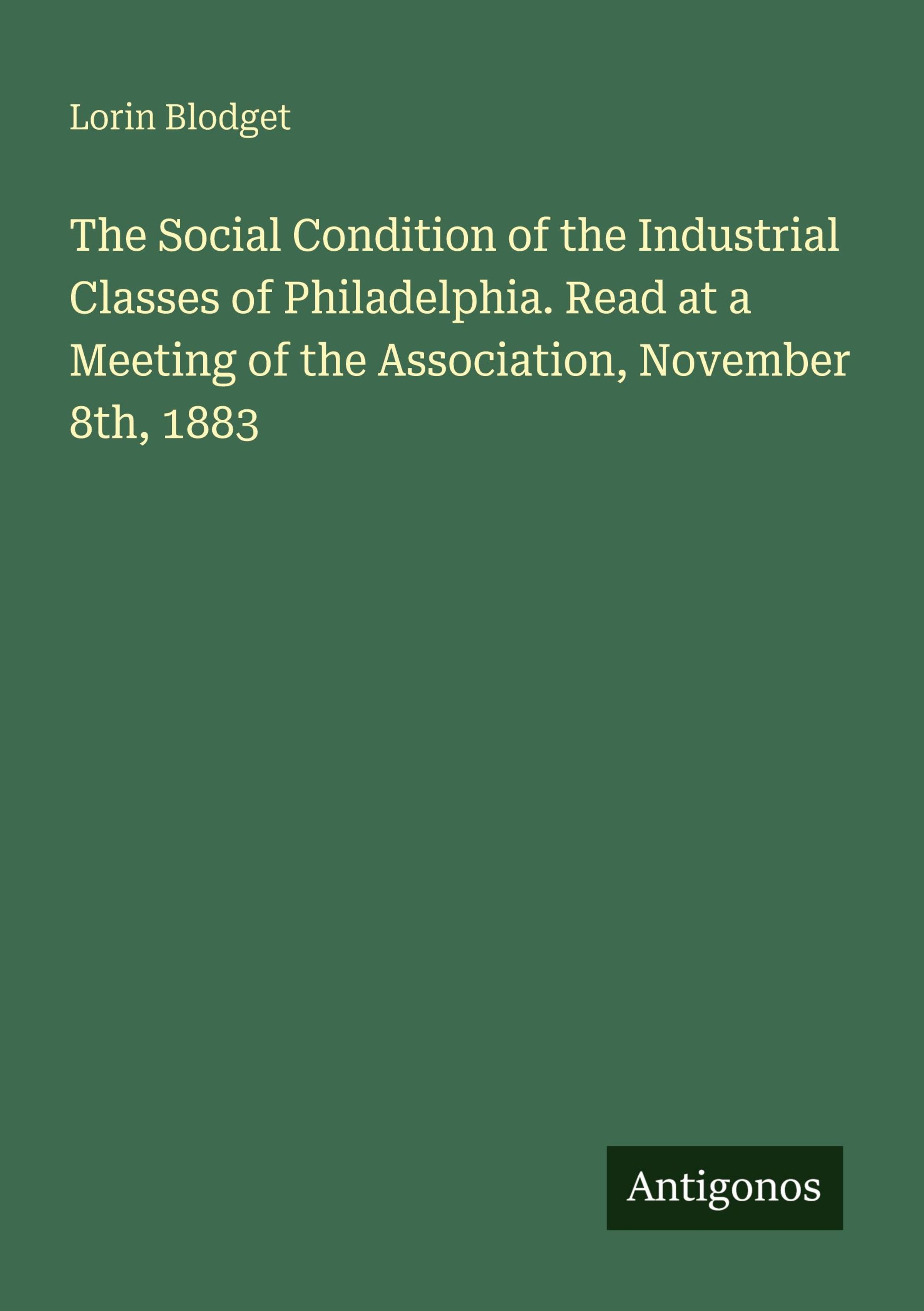 Lorin Blodget: The Social Condition of the Industrial Classes of Philadelphia. Read at a Meeting of the..., Kartoniert / Broschiert
