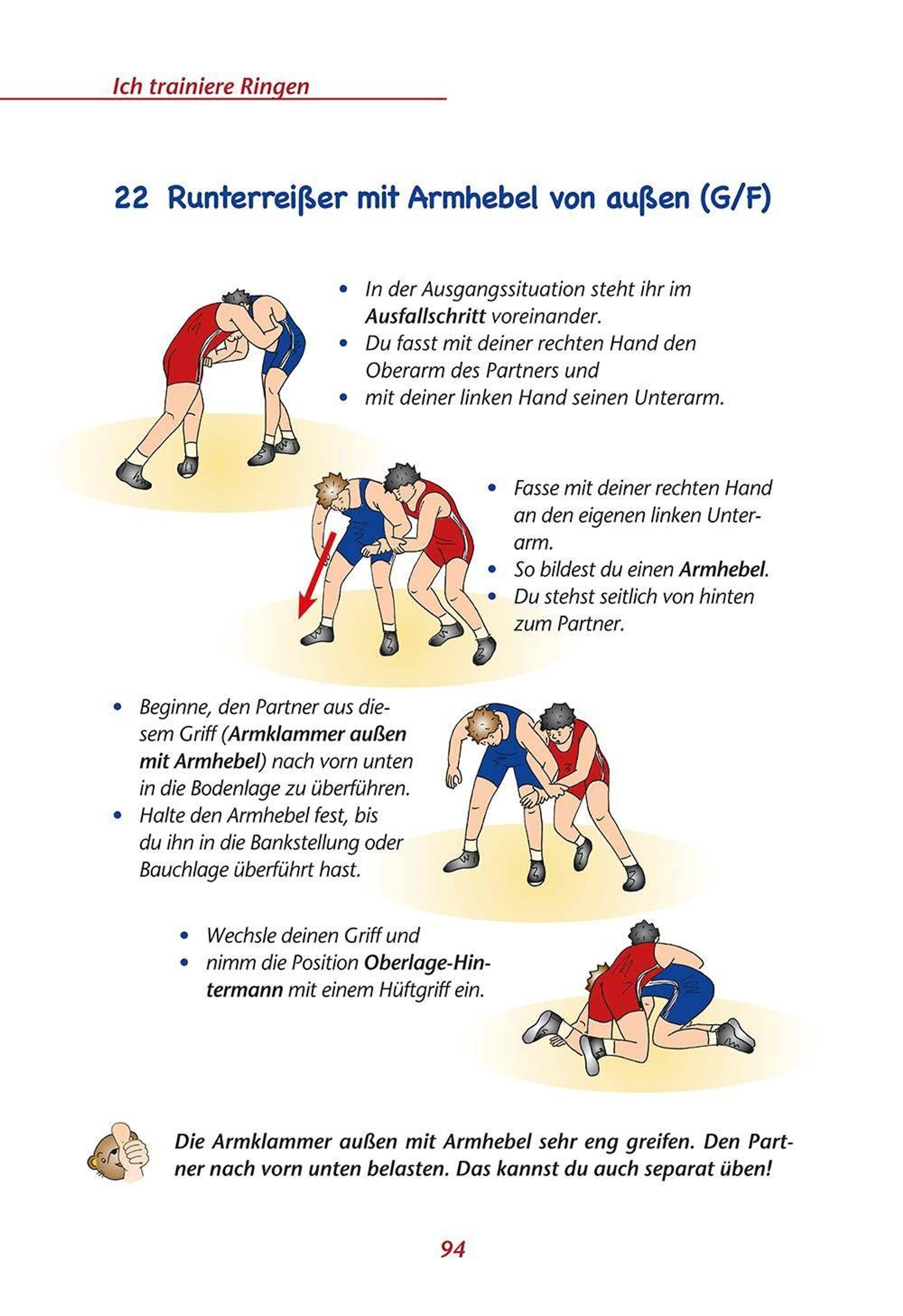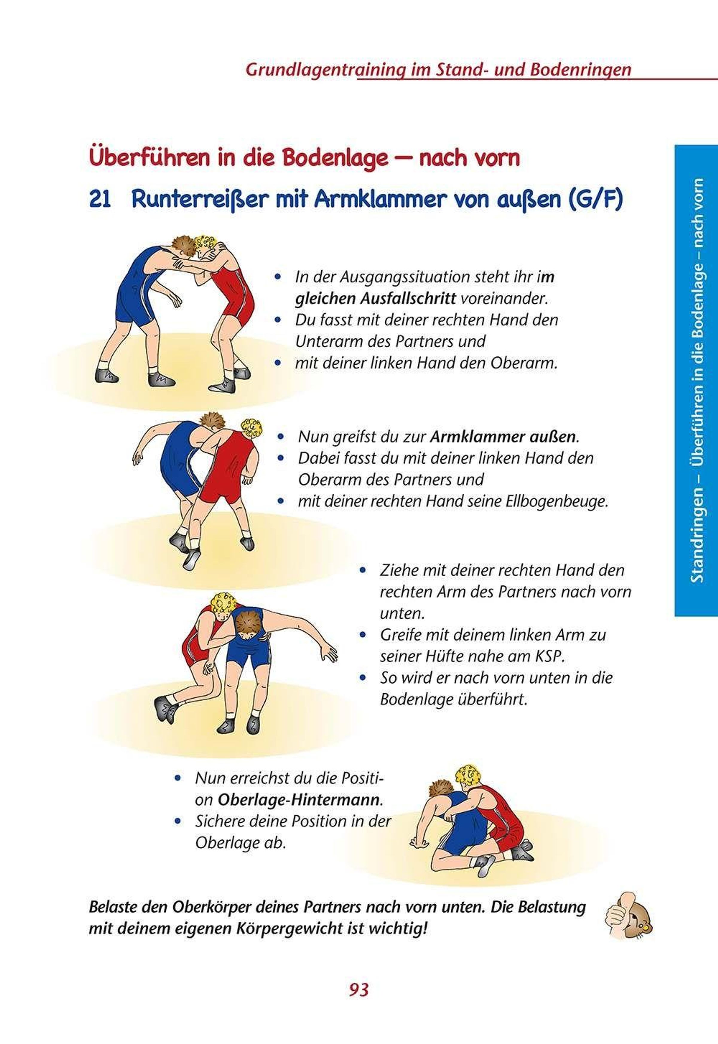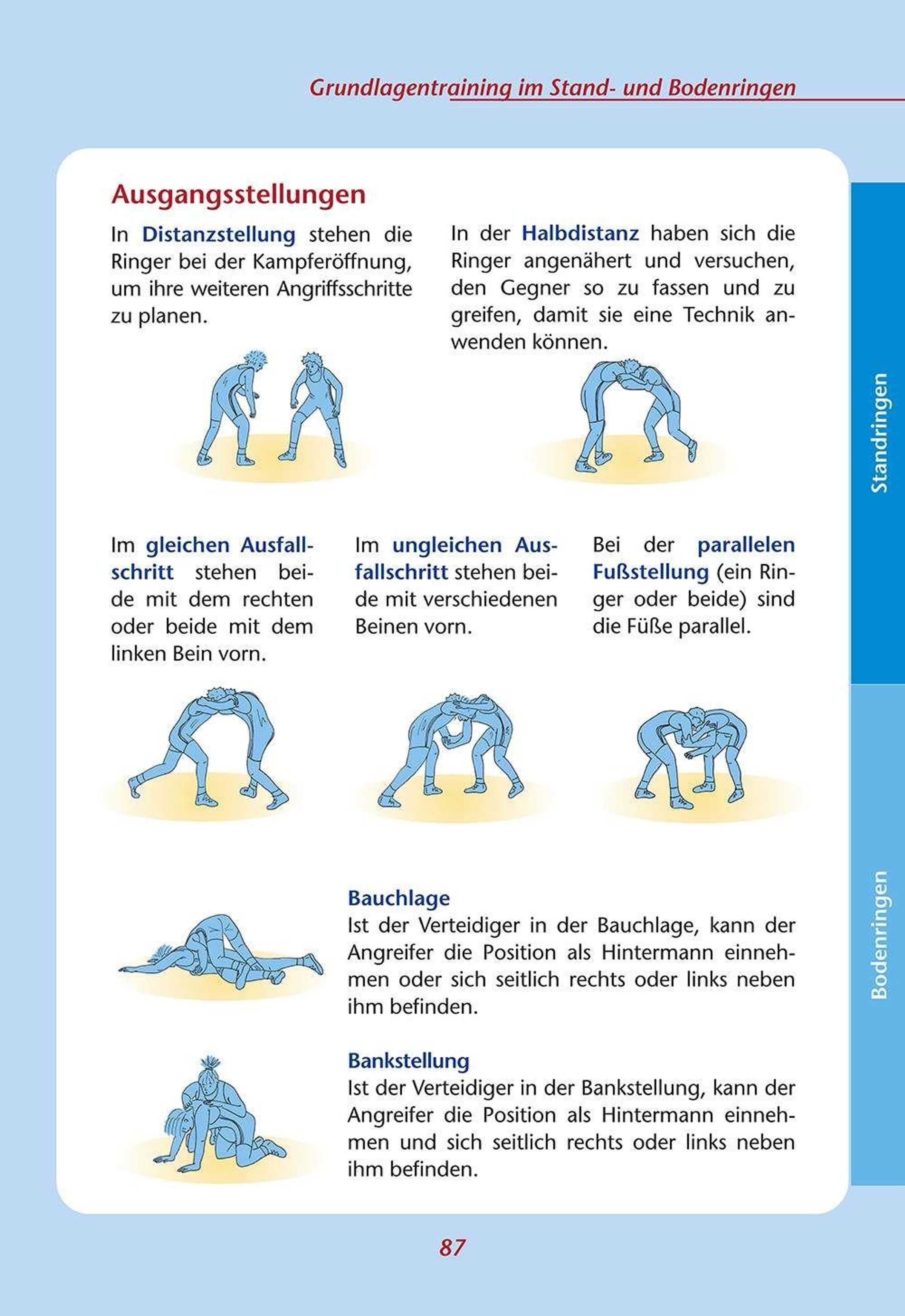 Auf die ersten Techniken der Grundausbildung im Standringen und Bodenringen wird aufgebaut und es gibt viele Hinweise für die neuen Techniken, zur richtigen Ausführung und Anwendung.