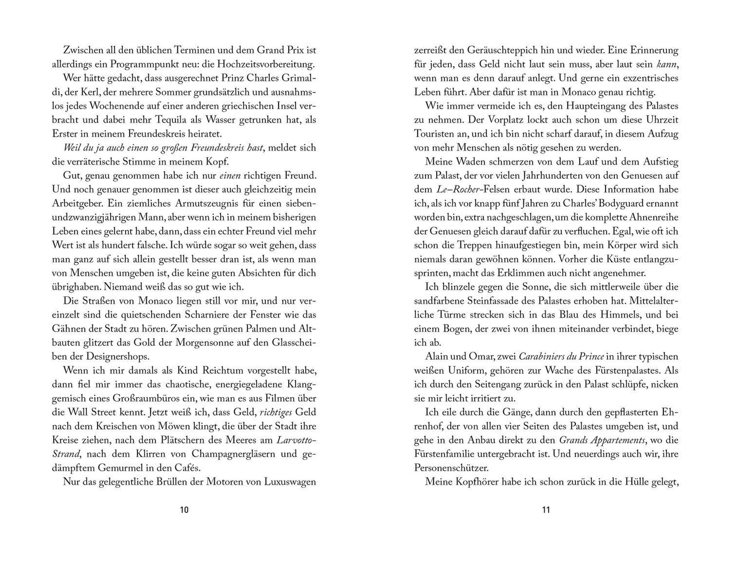 Yves Barton ist kalt, abweisend und lässt niemanden an sich heran - dafür ist er der beste Bodyguard, den die Krone von Monaco jemals hatte. Was jedoch niemand weiß: Yves hat eine dunkle Vergangenheit, von der niemand erfahren darf. Nicht einmal sein engster Freund, Kronprinz Charles von Monaco. Als dieser sich verlobt, muss Yves ausgerechnet mit seiner verhassten Bodyguard-Kollegin Nisha Basu die Sicherheitsvorkehrungen für die royale Hochzeit treffen. Mit ihrer toughen Art und dem Faible für Kampfsportarten stellt Nisha für Yves in mehr als nur einer Hinsicht eine Gefahr dar. Erst recht als er merkt, dass der Grat zwischen Rivalität und Leidenschaft sehr schmal ist. Und dass nicht einmal ein Bodyguard vor der Liebe sicher ist.