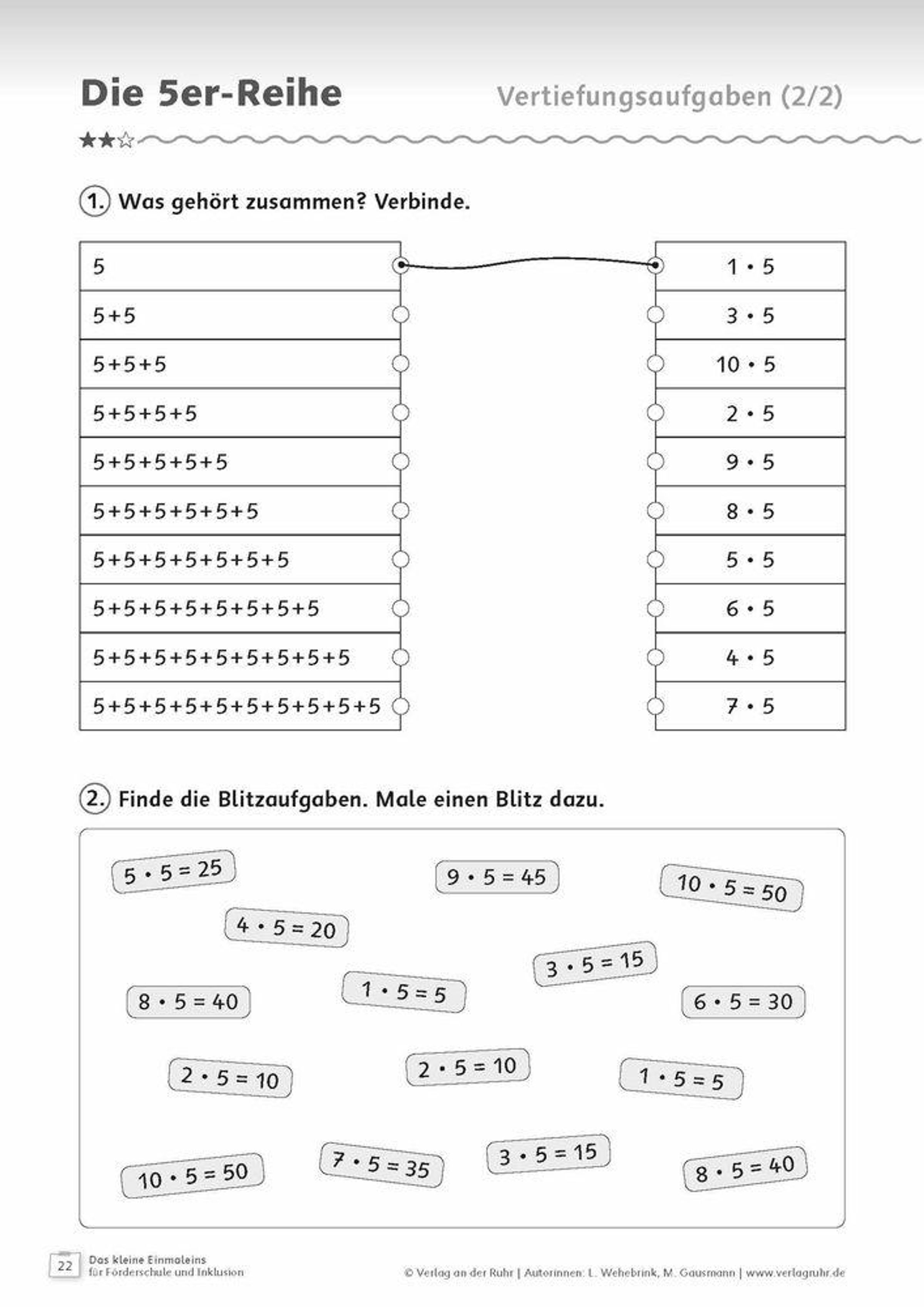- kleinschrittige und gut strukturierte Arbeitsblätter mit wiederkehrenden Aufgabenformaten,