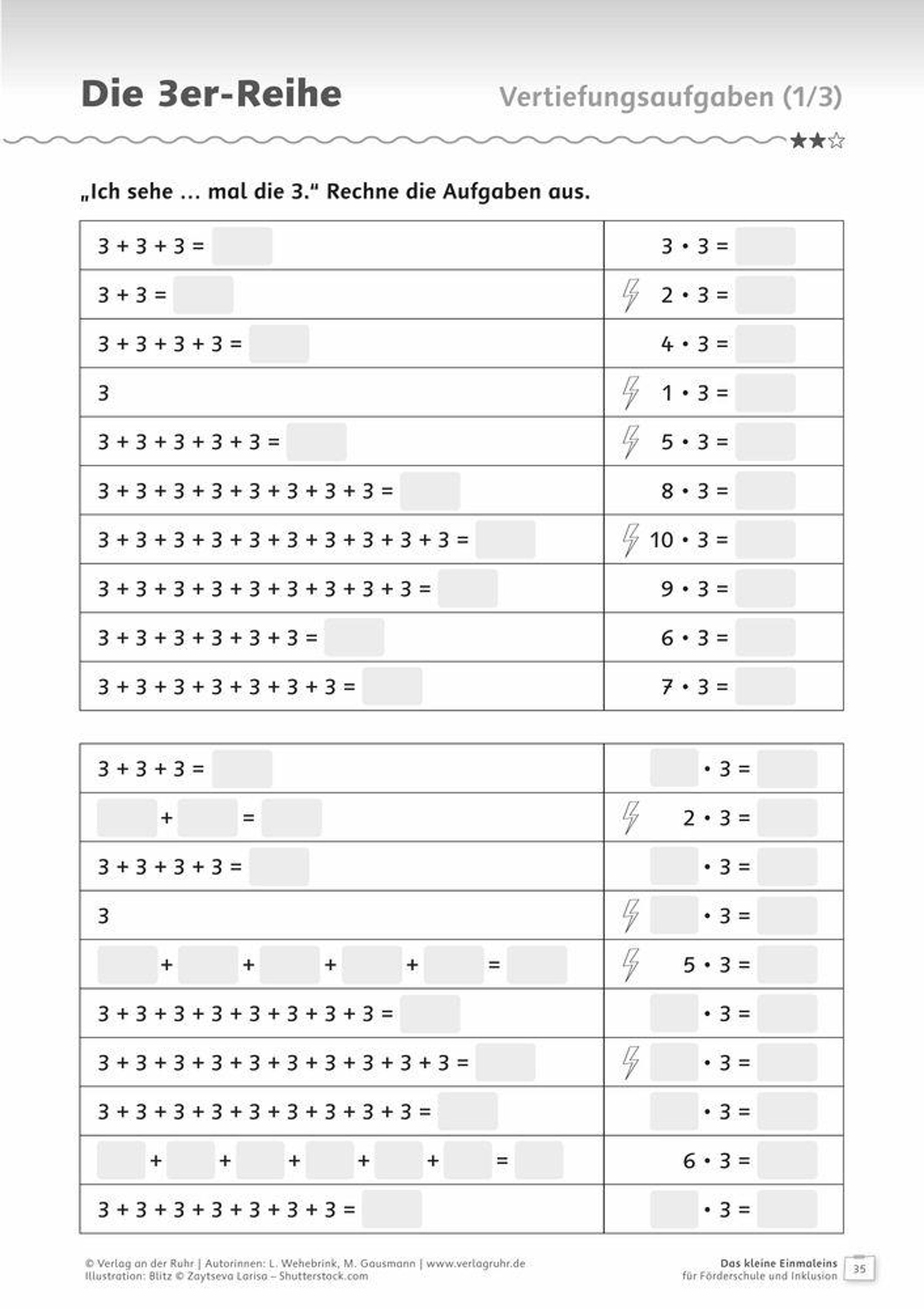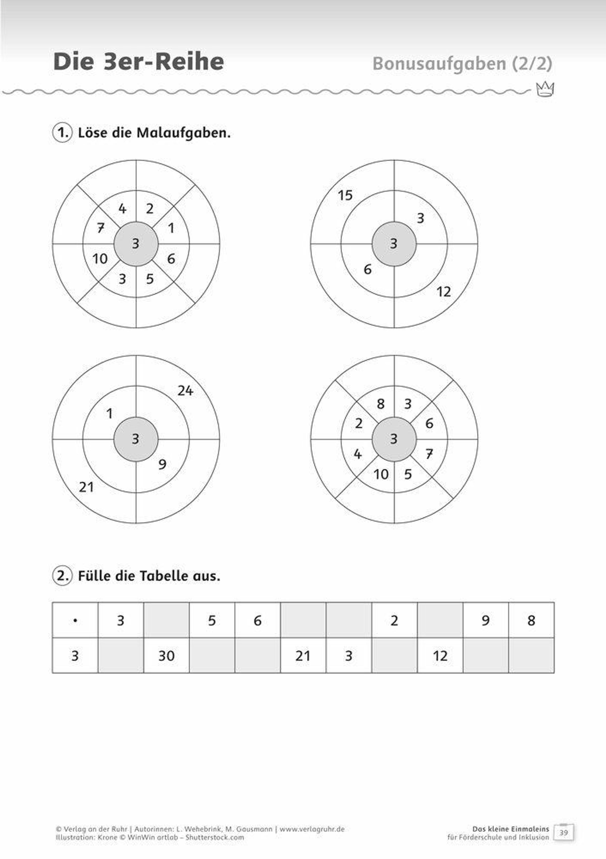 Arbeitsblätter für Schüler und Schülerinnen an Förderschulen und in der Inklusion, Fach: Mathematik, Klasse 3-6 +++ Das kleine Einmaleins stellt viele Schüler und Schülerinnen mit Förderschwerpunkt Lernen vor große Herausforderungen. Oft fehlt das grundlegende mathematische Verständnis oder die Automatisierung gelingt nur schwer. Diese 1x1-Training mit Übungen speziell für Förderschüler und -schülerinnen bietet: