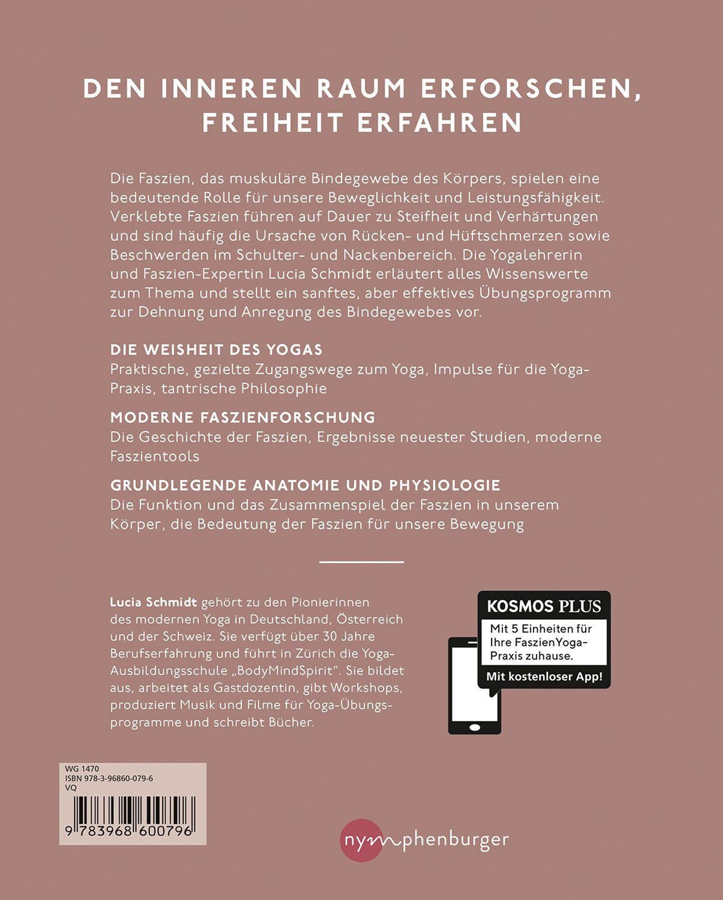 Faszien stützen den Körper und umhüllen Muskeln, Organe und Knochen. Das muskuläre Bindegewebe spielt eine bedeutende Rolle für unsere Beweglichkeit und Leistungsfähigkeit. Sie Je geschmeidiger die Faszien sind, desto besser sind die Körperwahrnehmung und die Koordination. Bei Schmerzen verkleben sie jedoch und auch Stress lässt die Spannung in den Faszien steigen. Dies führt auf Dauer zu einem Verlust der Elastizität, zu Steifheit und Verhärtungen. Verklebte Faszien sind häufig die Ursache von Rücken- und Hüftschmerzen sowie Beschwerden im Schulter- und Nackenbereich. Die Yogalehrerin und Faszien-Expertin Lucia Nirmala Schmidt erläutert alles Wissenswerte zum Thema und stellt ein sanftes, aber effektives Übungsprogramm zur Dehnung und Anregung des Bindegewebes vor - für Gesundheit und ein rundum gutes Körpergefühl.