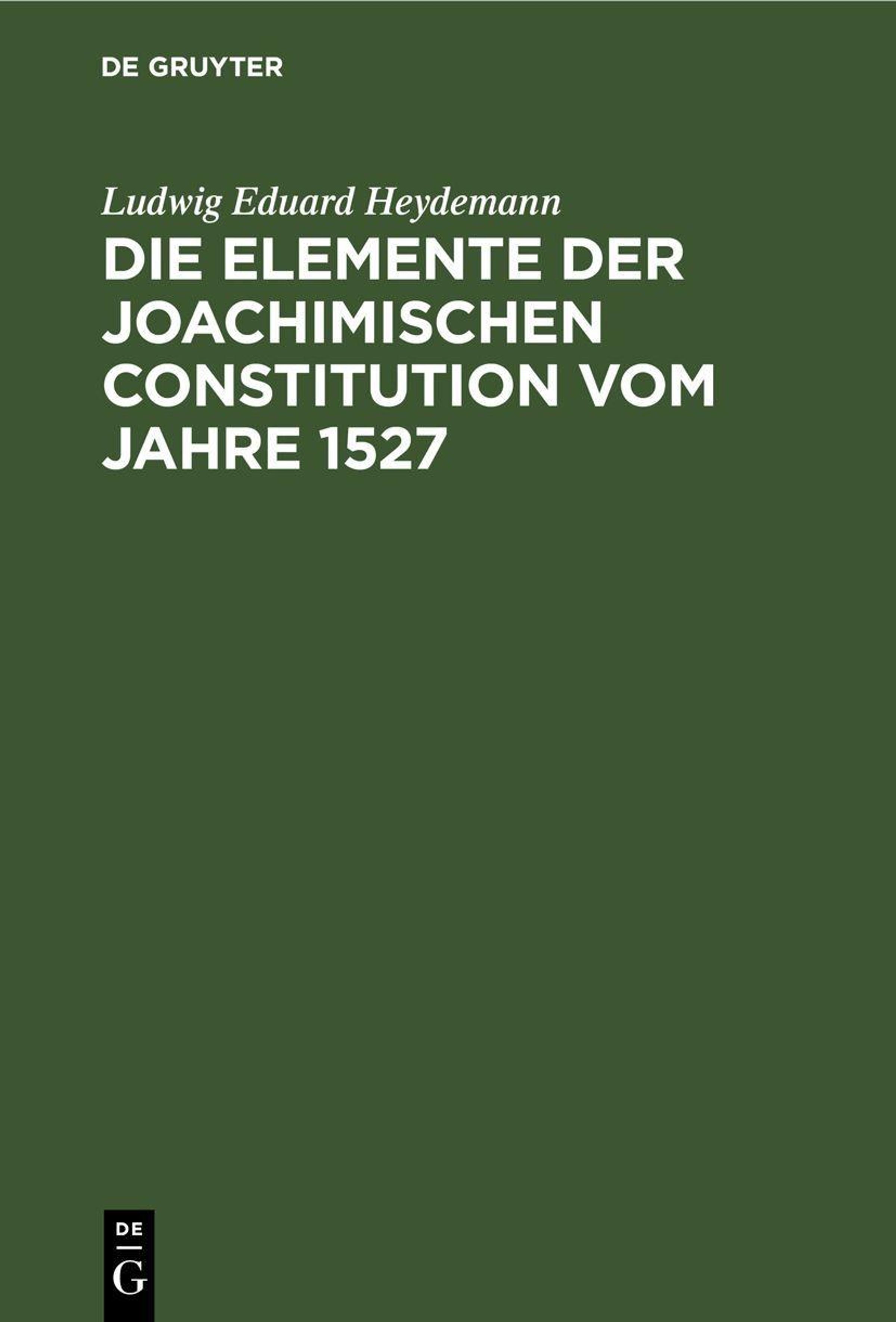 Ludwig Eduard Heydemann: Die Elemente der Joachimischen Constitution vom Jahre 1527, Gebunden