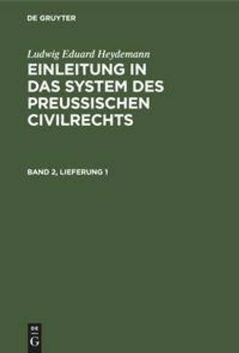 Ludwig Eduard Heydemann: Einleitung in das System des Preußischen Civilrechts. Band 2, Lieferung 1