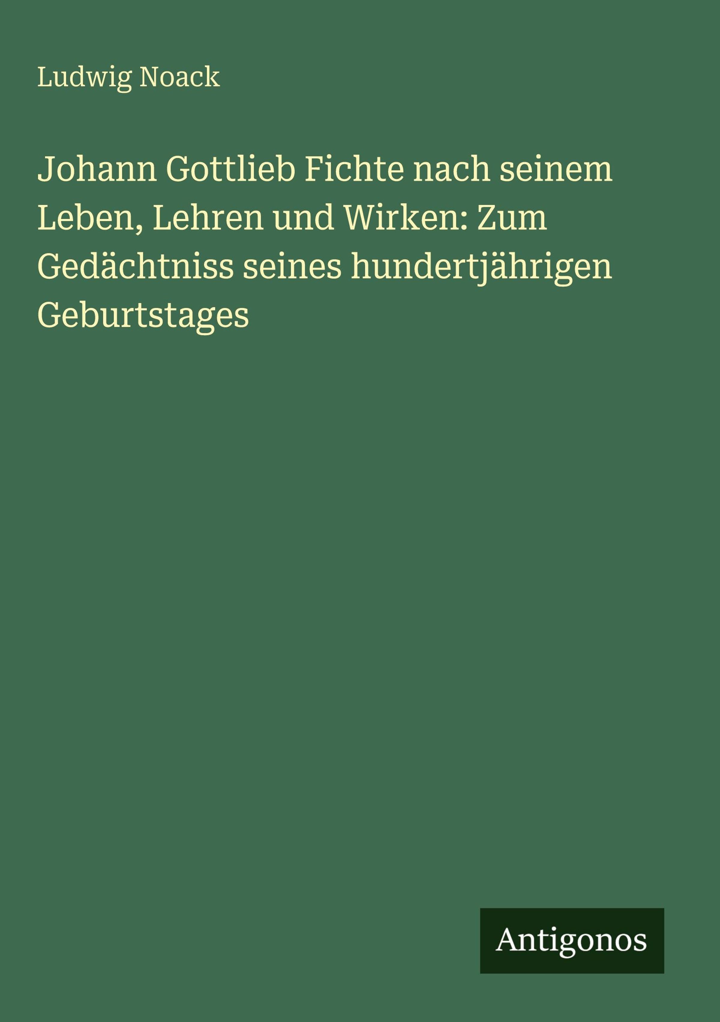 Ludwig Noack: Johann Gottlieb Fichte nach seinem Leben, Lehren und Wirken: Zum Gedächtniss seines..., Gebunden