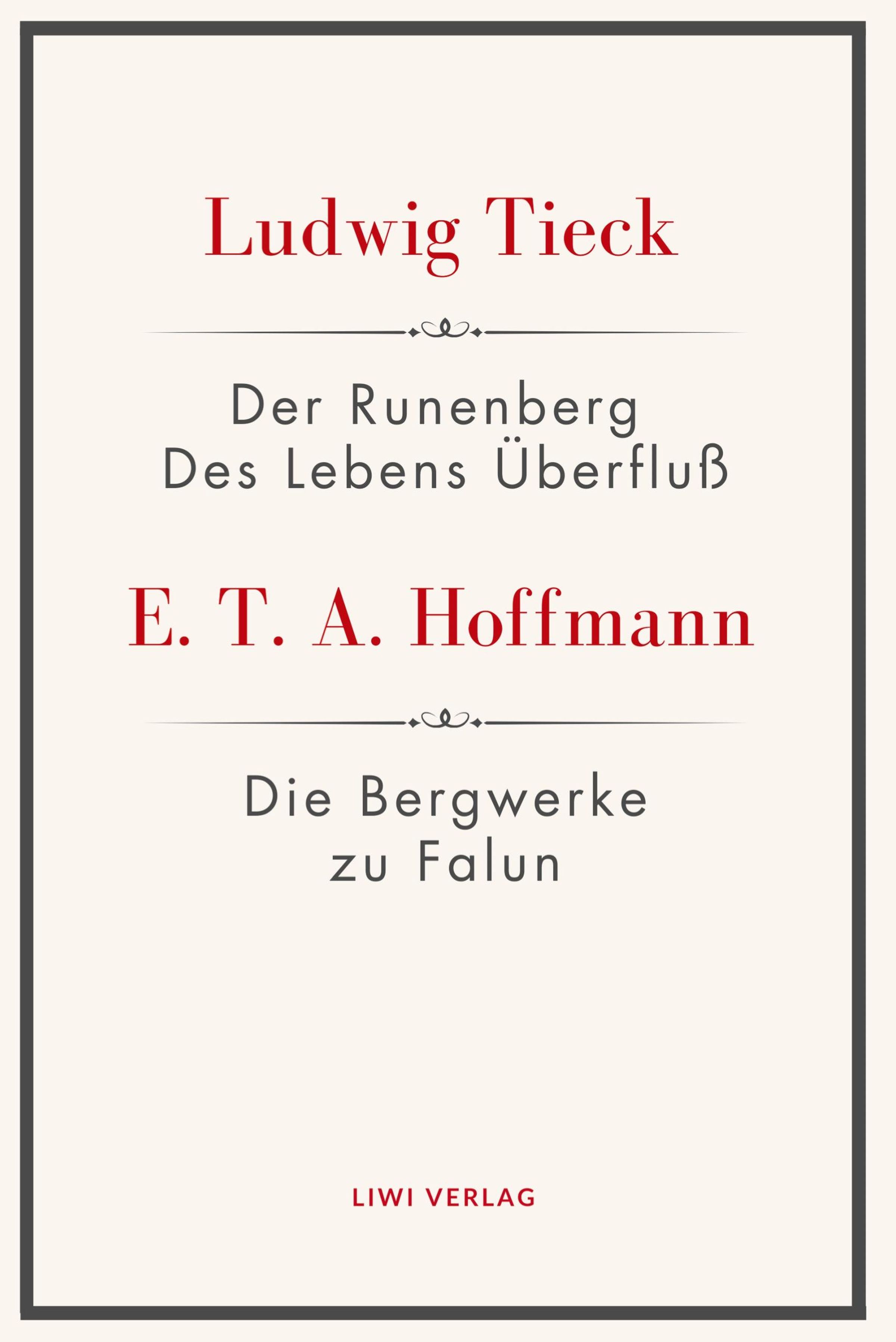 Ludwig Tieck. Der Runenberg / Des Lebens Überfluß. E. T. A. Hoffmann. Die Bergwerke zu Falun. Textausgabe zur Literatur um 1800 für Schule, Abitur und Studium. Erstdruck "Der Runenberg" in: Taschenbuch für Kunst und Laune, C. G. Cramer, Köln 1804. Erstdruck "Des Lebens Überfluß" in: Urania. Taschenbuch auf das Jahr 1839, Leipzig 1839. Erstdruck "Die Bergwerke zu Falun" in: Die Serapionsbrüder. Reimer, Berlin 1819-1821. Durchgesehener Neusatz, der Text dieser Ausgabe folgt: Ludwig Tieck: Werke in vier Bänden. Winkler Verlag, München 1963. E. T. A. Hoffmann: Poetische Werke in sechs Bänden, Aufbau Verlag, Berlin 1958. Vollständige Neuausgabe, Göttingen 2025. LIWI Literatur- und Wissenschaftsverlag