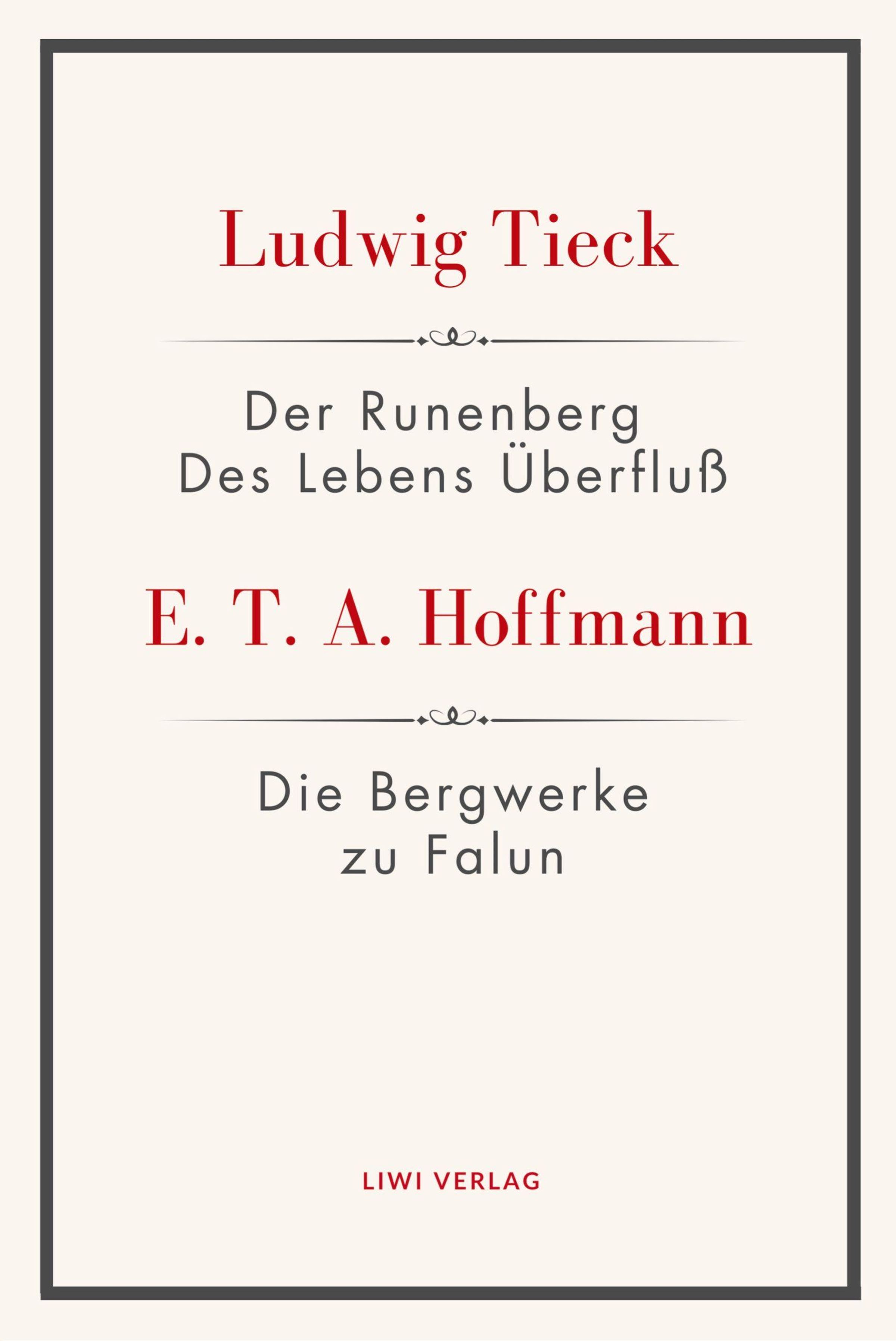 Ludwig Tieck. Der Runenberg / Des Lebens Überfluß. E. T. A. Hoffmann. Die Bergwerke zu Falun. Textausgabe zur Literatur um 1800 für Schule, Abitur und Studium. Erstdruck "Der Runenberg" in: Taschenbuch für Kunst und Laune, C. G. Cramer, Köln 1804. Erstdruck "Des Lebens Überfluß" in: Urania. Taschenbuch auf das Jahr 1839, Leipzig 1839. Erstdruck "Die Bergwerke zu Falun" in: Die Serapionsbrüder. Reimer, Berlin 1819-1821. Durchgesehener Neusatz, der Text dieser Ausgabe folgt: Ludwig Tieck: Werke in vier Bänden. Winkler Verlag, München 1963. E. T. A. Hoffmann: Poetische Werke in sechs Bänden, Aufbau Verlag, Berlin 1958. Vollständige Neuausgabe, Göttingen 2025. LIWI Literatur- und Wissenschaftsverlag