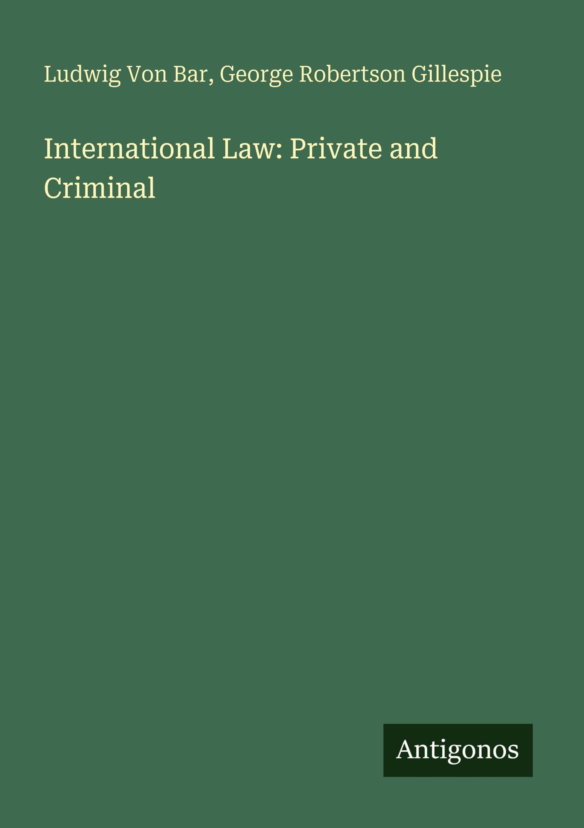Ludwig Von Bar: International Law: Private and Criminal, Kartoniert / Broschiert