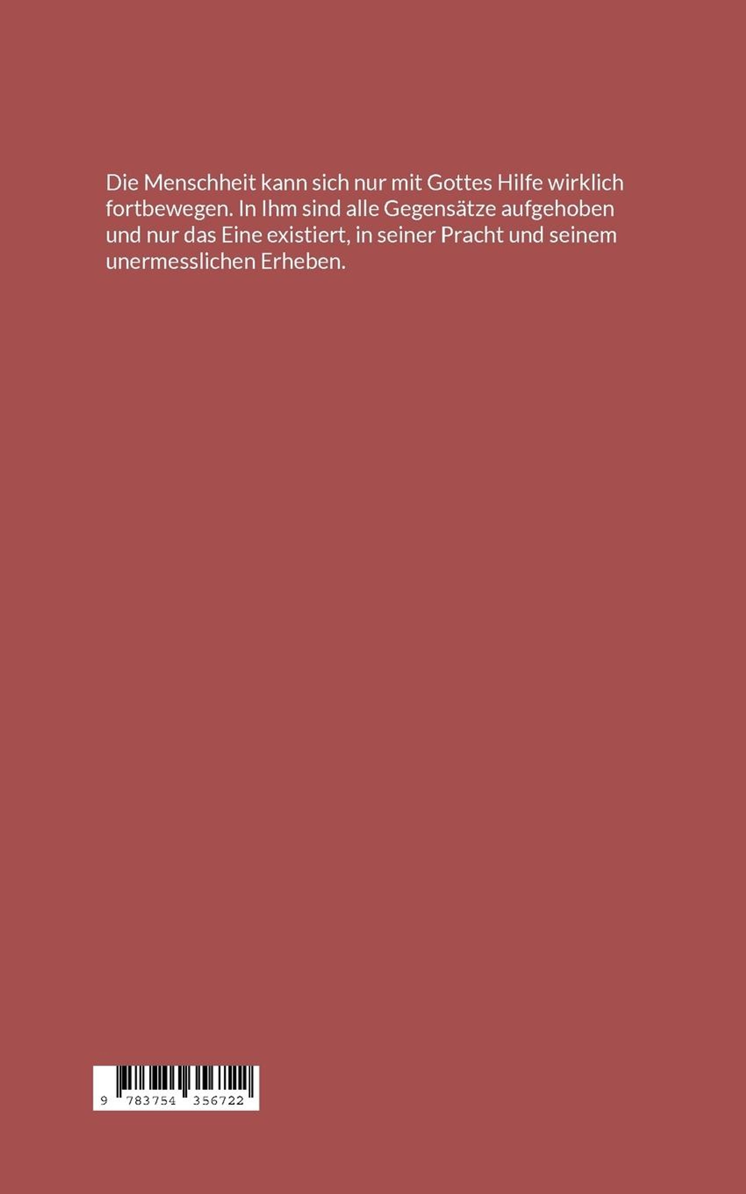 Die Menschheit kann sich nur mit Gottes Hilfe wirklich fortbewegen. In Ihm sind alle Gegensätze aufgehoben und nur das Eine existiert, in seiner Pracht und seinem unermesslichen Erheben.