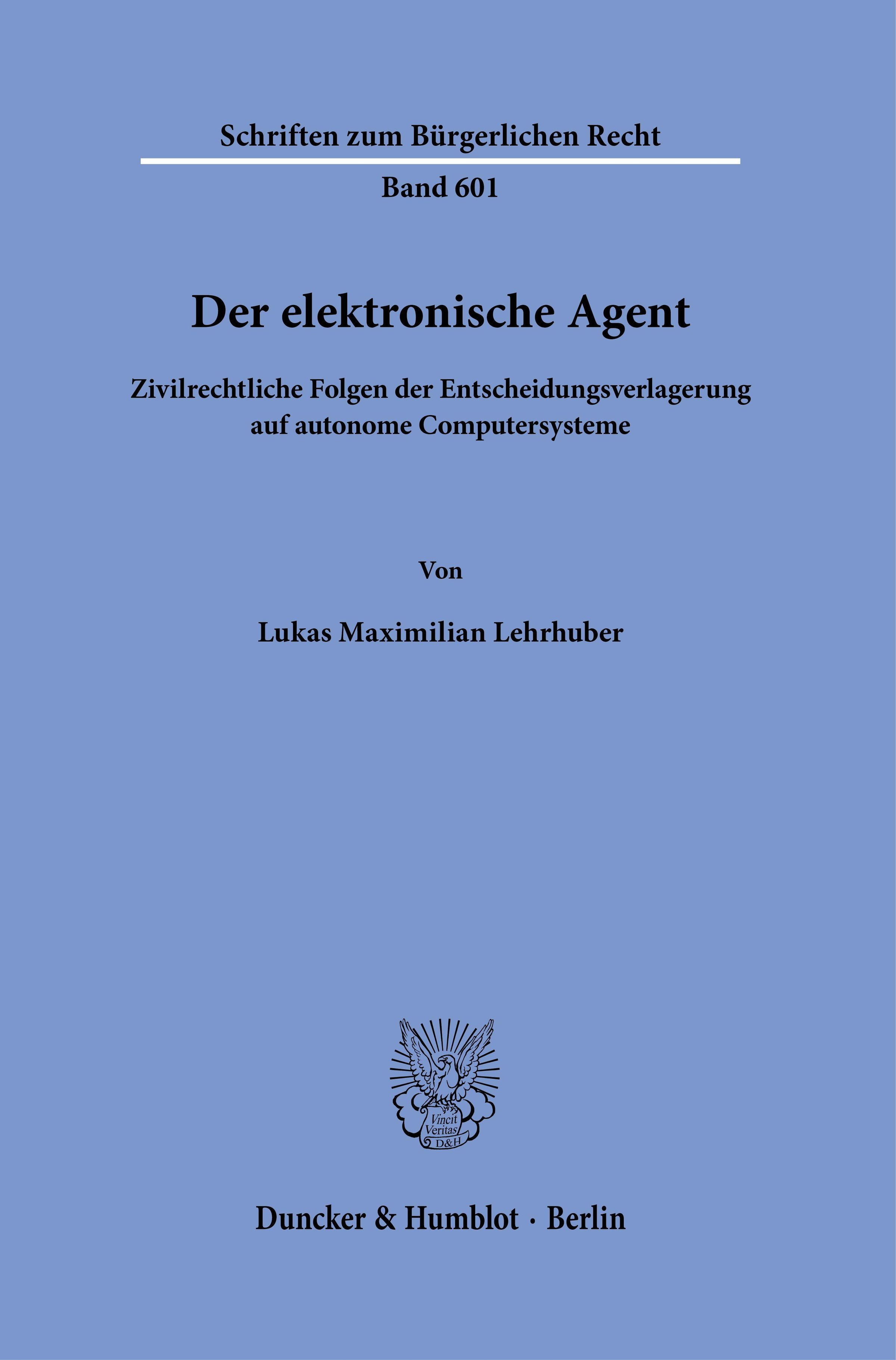 'The Electronic Agent. Private Law Consequences of Delegating Decisions to Autonomous AI-Systems': The author shows how the increasing delegation of decisions to autonomous AI systems is covered by private law between the principles of contractual freedom and consideration for the legitimate interests of third parties. He also illustrates that currently discussed models for the treatment of AI systems as legal subjects are neither necessary nor appropriate and explores the allocation of liability risks when using autonomous AI systems.