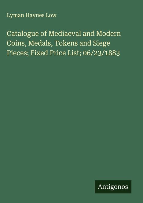 Lyman Haynes Low: Catalogue of Mediaeval and Modern Coins, Medals, Tokens and Siege Pieces; Fixed Price List;..., Gebunden