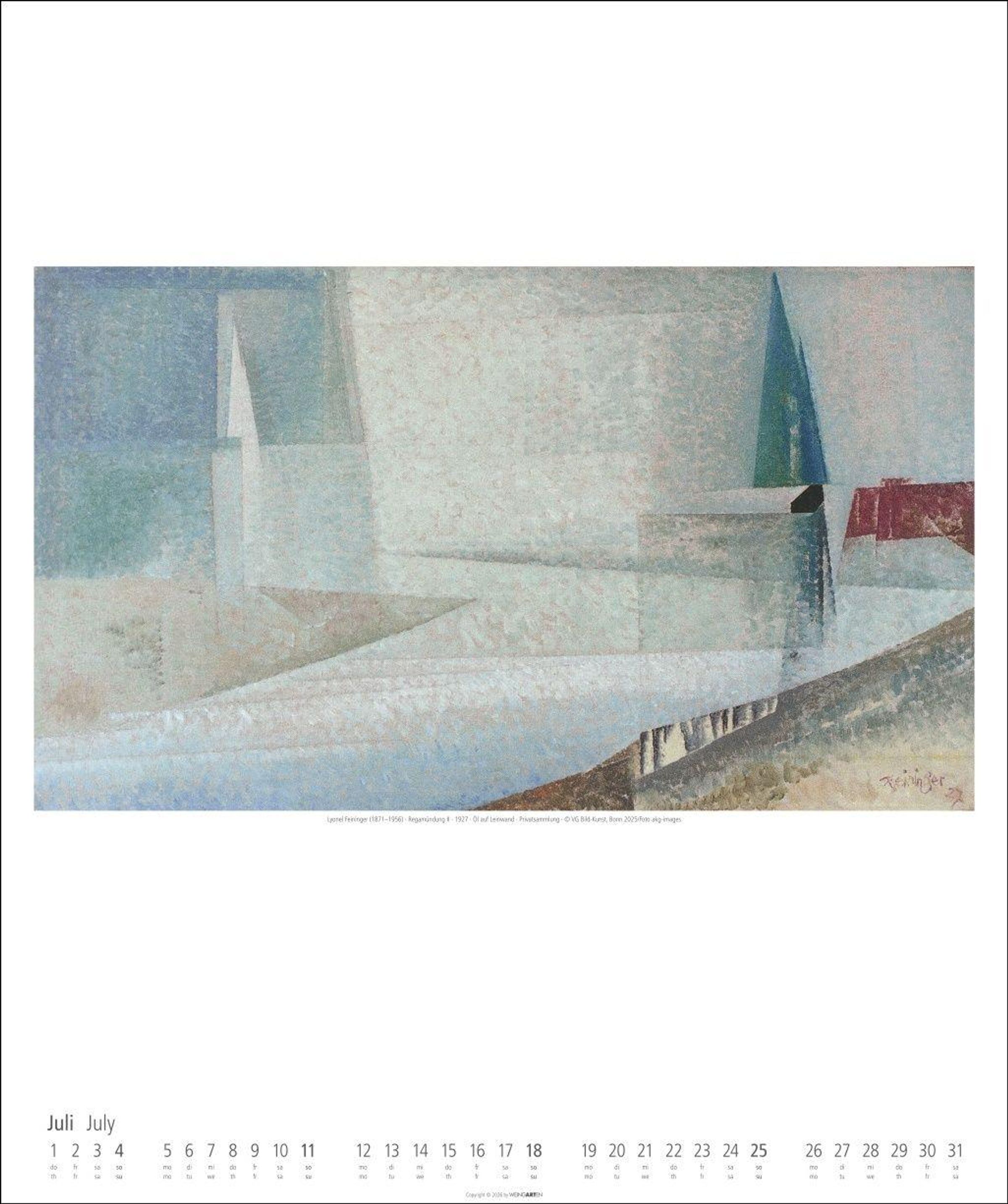 Kunstkalender im Großformat mit 12 hochwertigen Drucken in Spitzenqualität: Selten gezeigte Meisterstücke von Feininger bis ins letzte Detail genießen