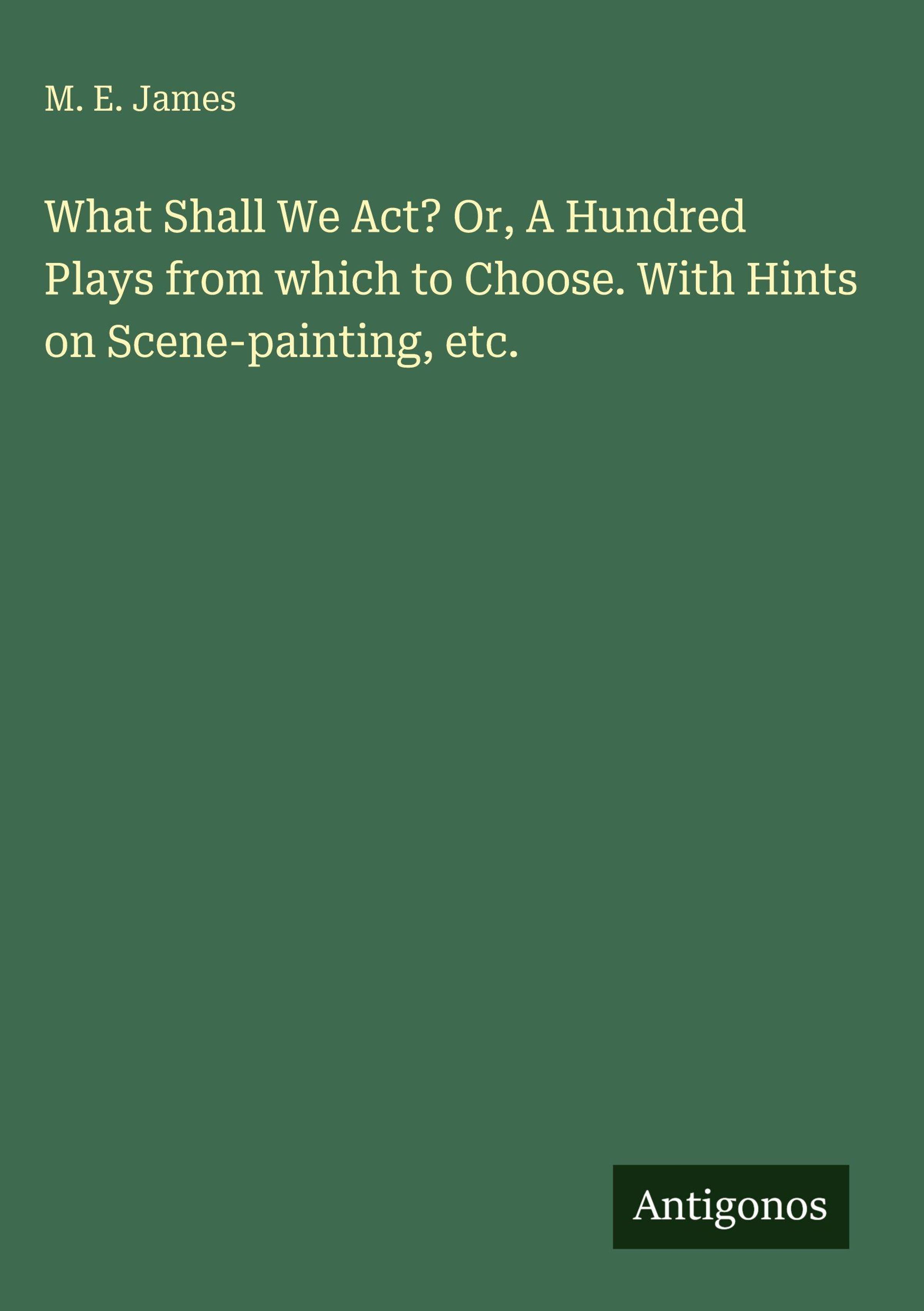 M. E. James: What Shall We Act? Or, A Hundred Plays from which to Choose. With Hints on Scene-painting, etc., Gebunden