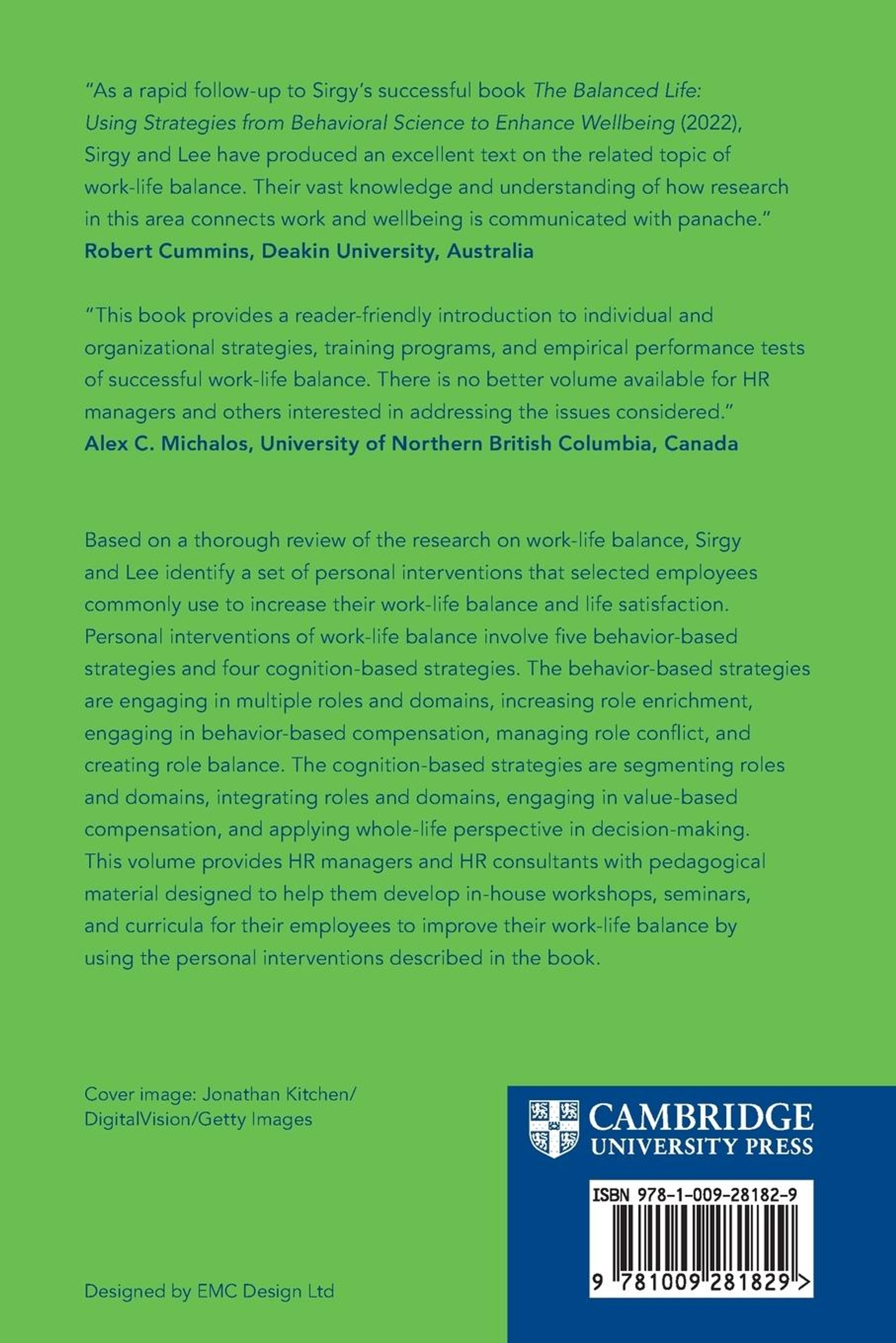 Based on a thorough review of the research on work-life balance, Sirgy and Lee identify a set of personal interventions that selected employees commonly use to increase their work-life balance and life satisfaction. Personal interventions of work-life balance involve five behavior-based strategies and four cognition-based strategies. The behavior-based strategies are engaging in multiple roles and domains, increasing role enrichment, engaging in behavior-based compensation, managing role conflict, and creating role balance. The cognition-based strategies are segmenting roles and domains, integrating roles and domains, engaging in value-based compensation, and applying whole-life perspective in decision-making. This volume provides HR managers and HR consultants with pedagogical material designed to help them develop in-house workshops, seminars, and curricula for their employees to improve their work-life balance by using the personal interventions described in the book.