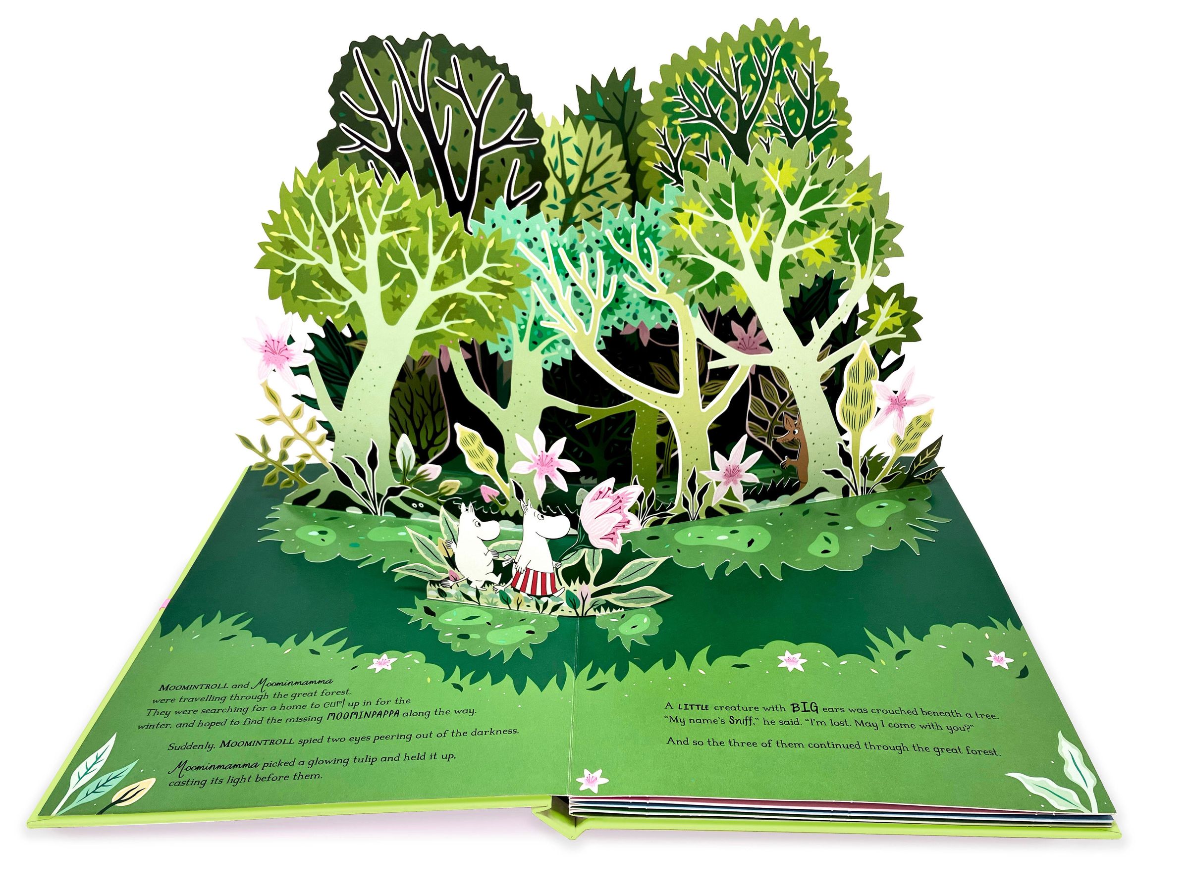 Join the Moomins on their adventure as you turn the pages and reveal five stunning pop-up scenes. Explore a deep dark forest, play in an enchanted garden and sail on storm-tossed seas. When a great flood devastates the land, hop onto the back of a friendly marabou stork and soar across the skies. Will the Moomin family find Moominpappa and settle into a new home before winter comes?