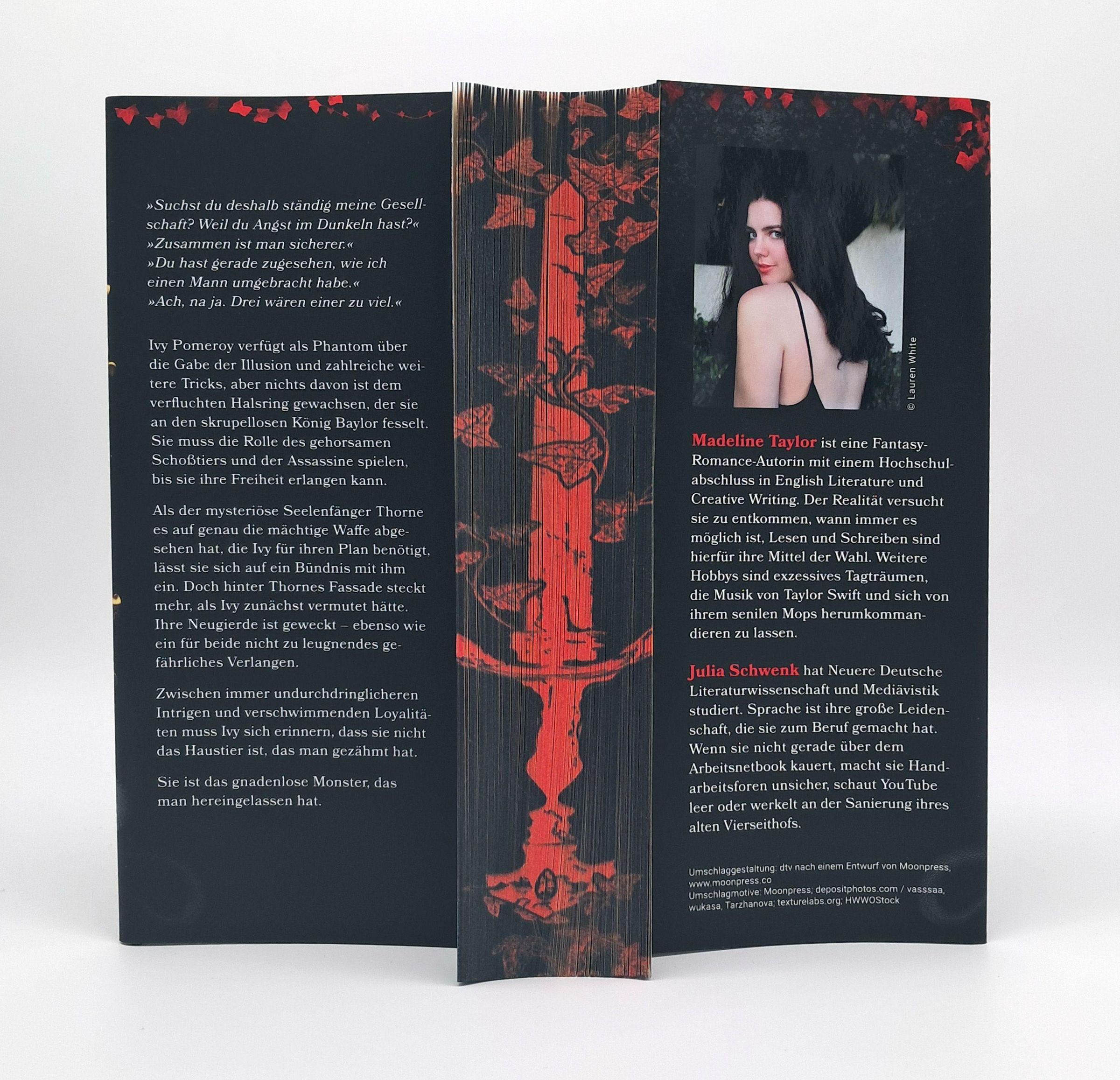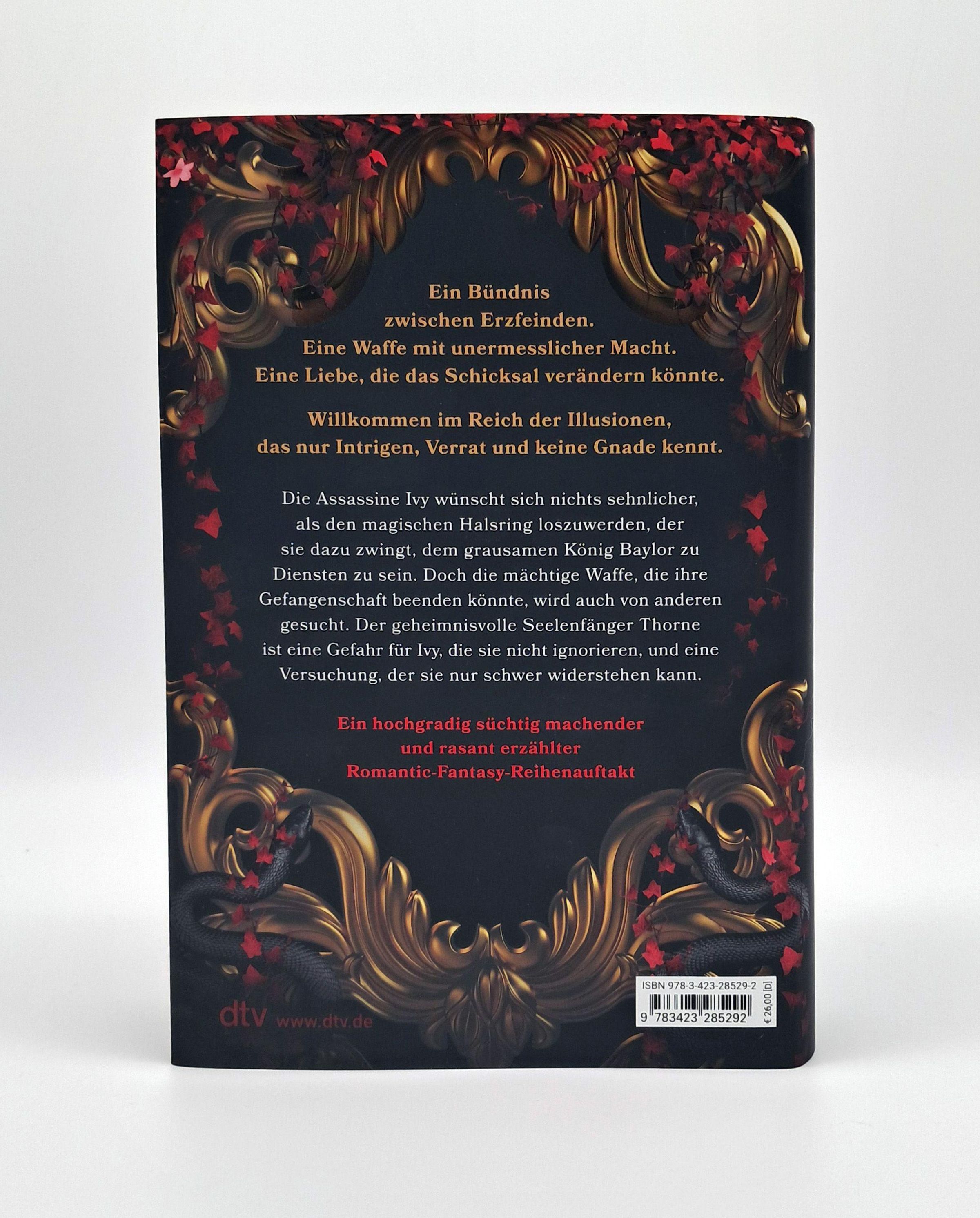 Ivy Pomeroy verfügt als Phantom über die Gabe der Illusion und hat zahlreiche weitere Tricks in der Hinterhand, aber nichts davon ist dem verfluchten Halsring gewachsen, der sie an den skrupellosen König Baylor fesselt. Sie muss die Rolle des gehorsamen Schoßtiers und seiner braven Auftrags-Assassinin spielen, bis sie ihre Freiheit erlangen kann.