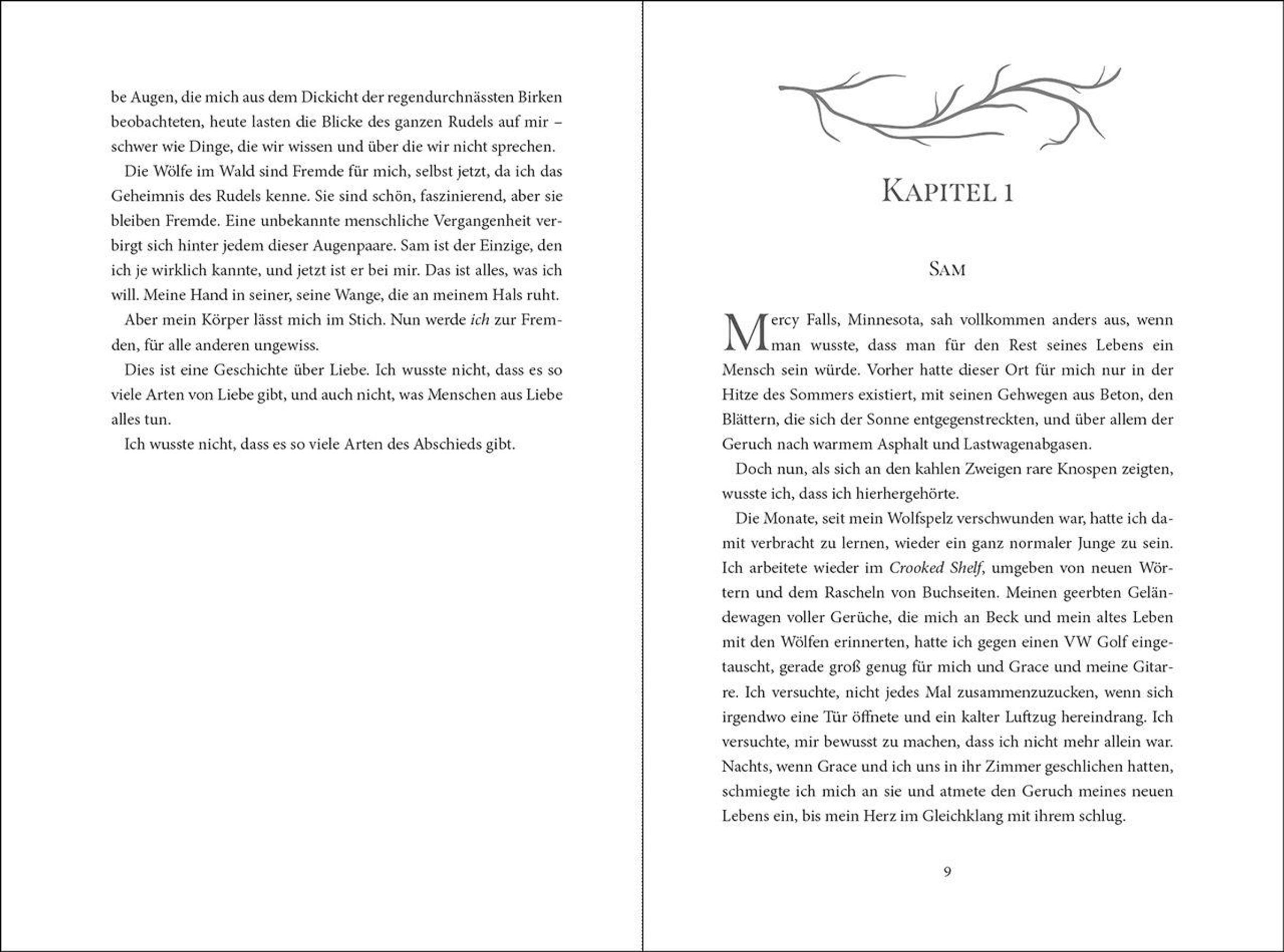Nach dem Sommer ruht das Licht ... Sam hat den Wolf in sich besiegt und ist zu Grace zurückgekehrt. Doch nun ist sie es, die nachts die Stimmen der Wölfe hört und weiß: Sie rufen nach ihr. Sam ahnt, dass sie der Aufforderung eines Tages folgen wird ... Wogegen Grace sich mit aller Macht wehrt, wäre Cole hochwillkommen. Die Wolfsgestalt ist seine Zuflucht, denn Cole wünscht sich nur eines: vergessen. Als Coles Vergangenheit ihn einholt und sich immer mehr neugierige Augen auf die Wölfe richten, schwebt das Rudel in größter Gefahr.