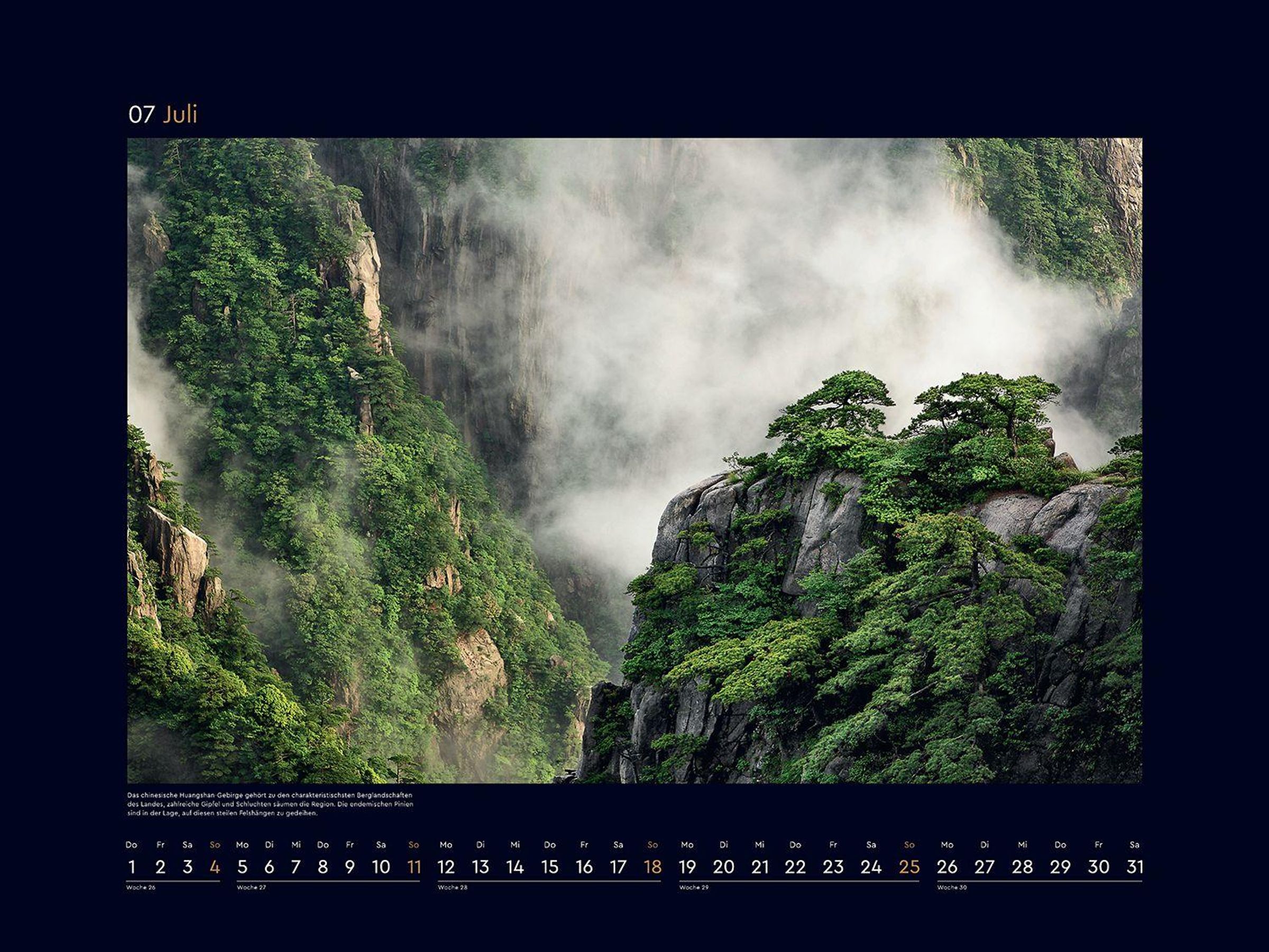Monat für Monat wartet ein bildstarkes Highlight auf Entdeckung, und ein ansprechendes Kalendarium sorgt für optimalen Nutzen. Die mattschwarzen Rahmen bilden einen starken Kontrast zu den brillanten Fotografien.