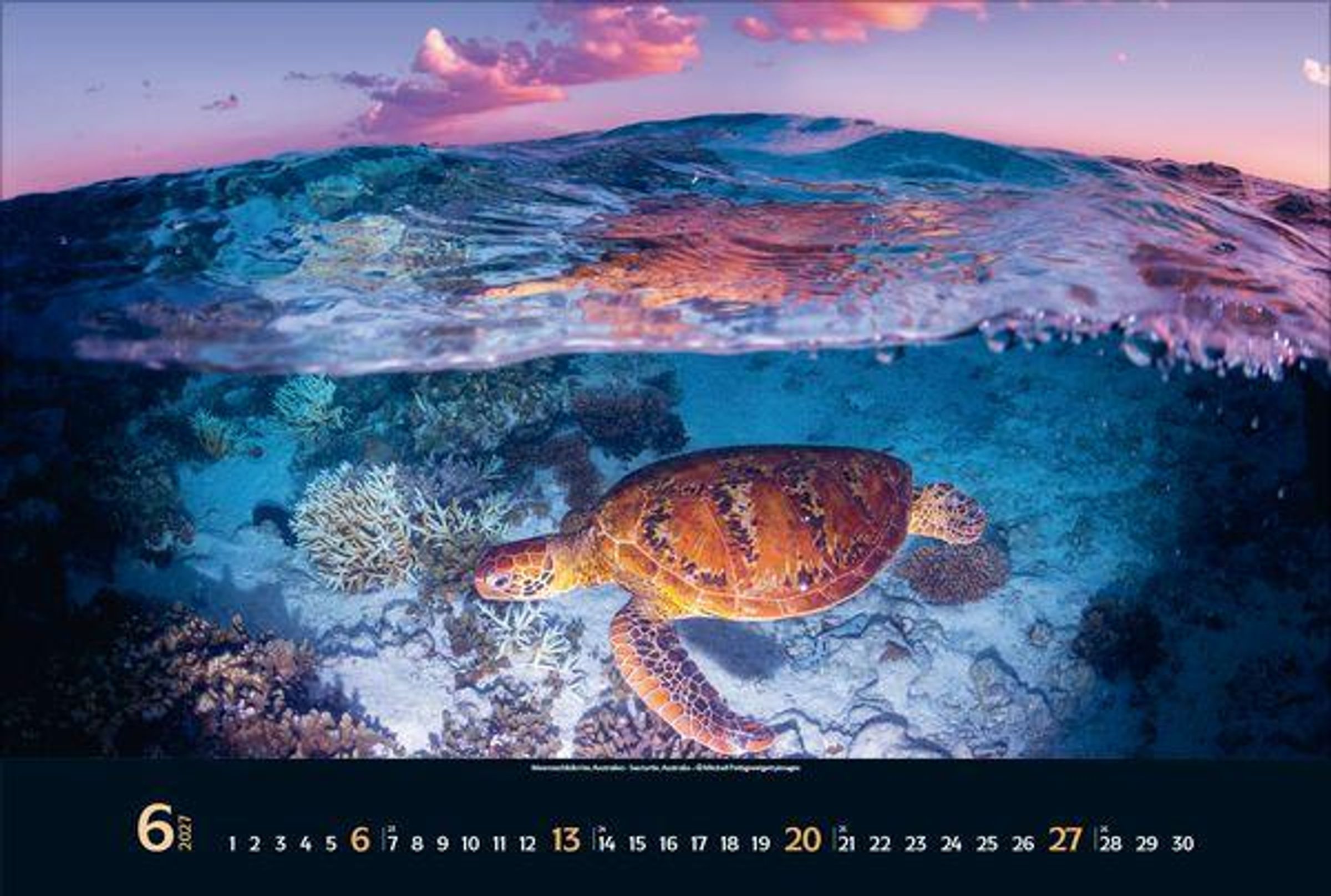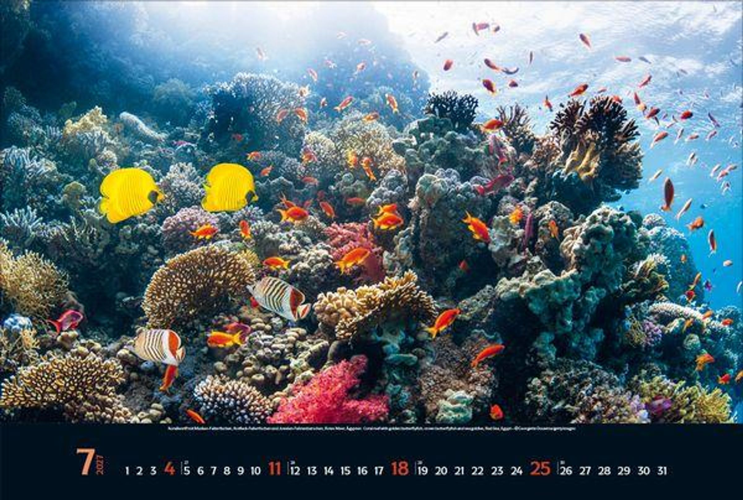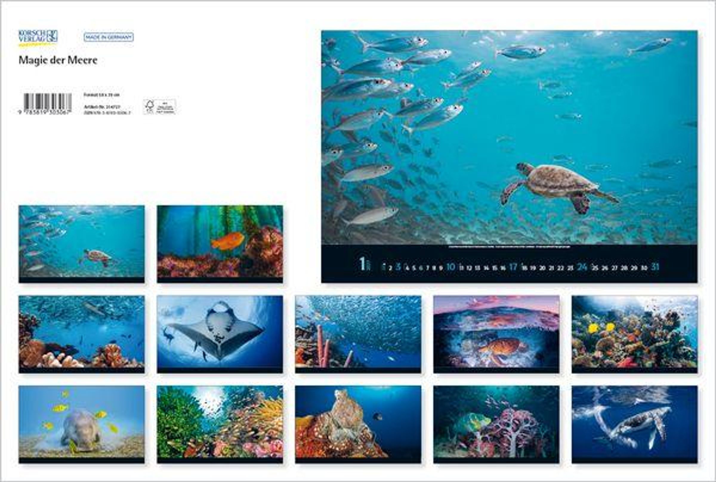 Gigantische Fischschwärme, geheimnisvolle Kraken, schwebende Rochen - die bunte Unterwasserwelt der Meere ist voller einzigartiger Lebewesen, die uns faszinieren. Tauchen Sie ein und genießen Sie jeden Monat eine neue magische Aufnahme aus den Weltmeeren in brillanter Fotoqualität.