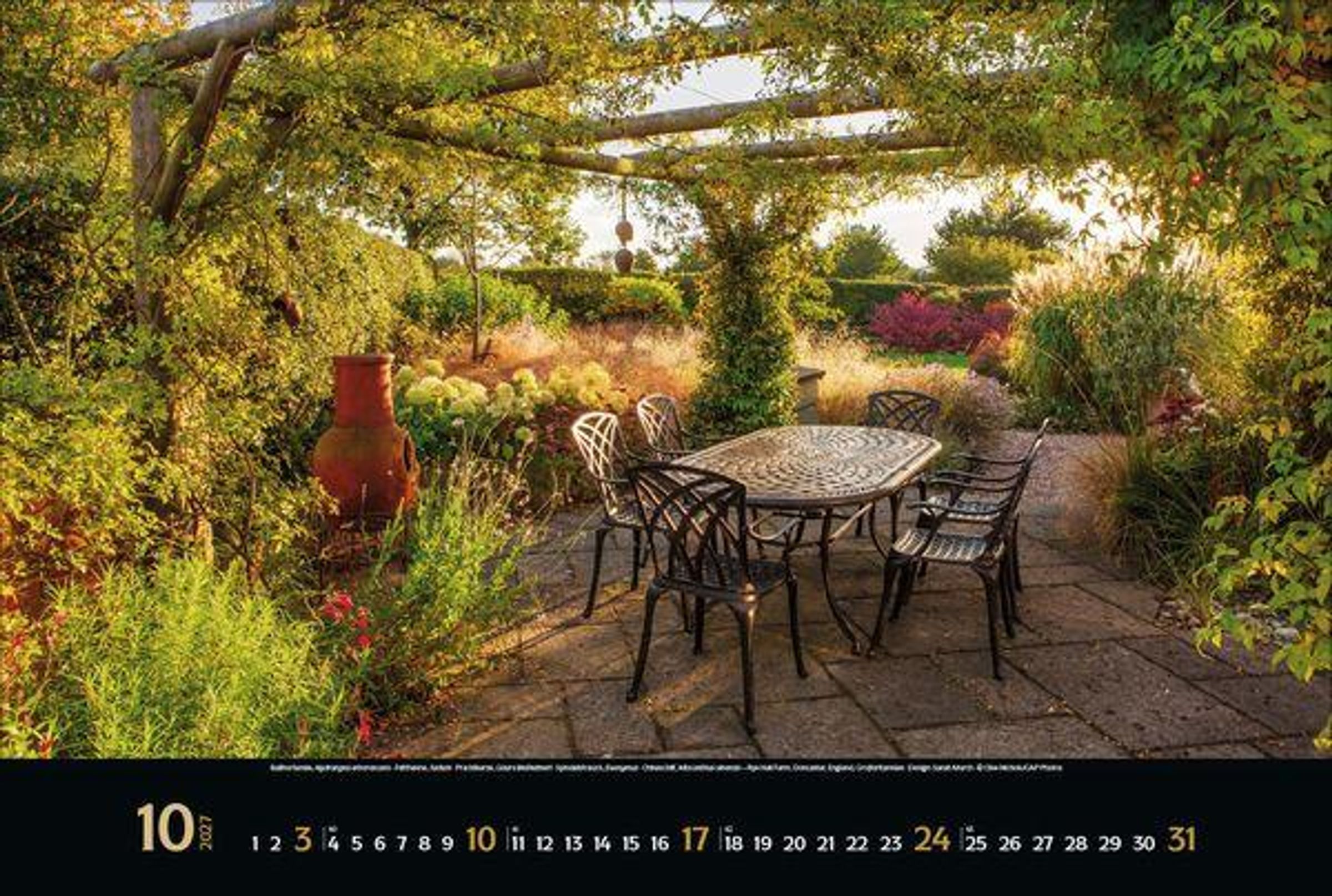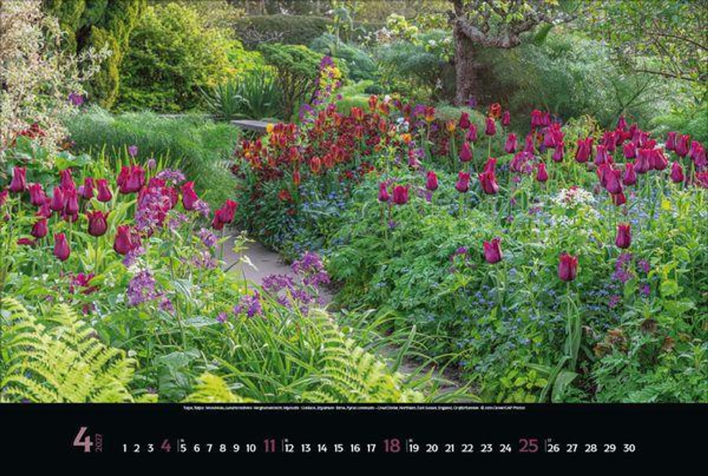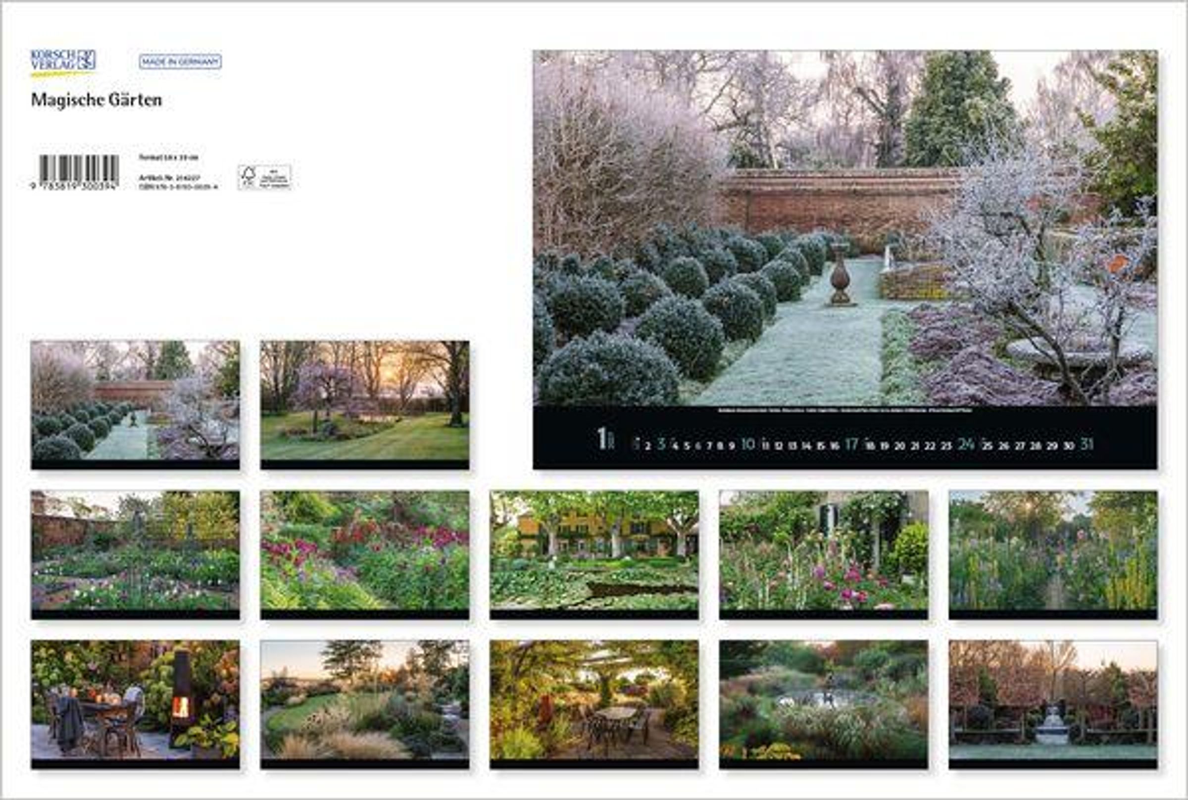 - Großer Foto-Wandkalender mit Bildern von verwunschenen Gärten. Edler schwarzer Hintergrund. PhotoArt Panorama Querformat: 58x39 cm.