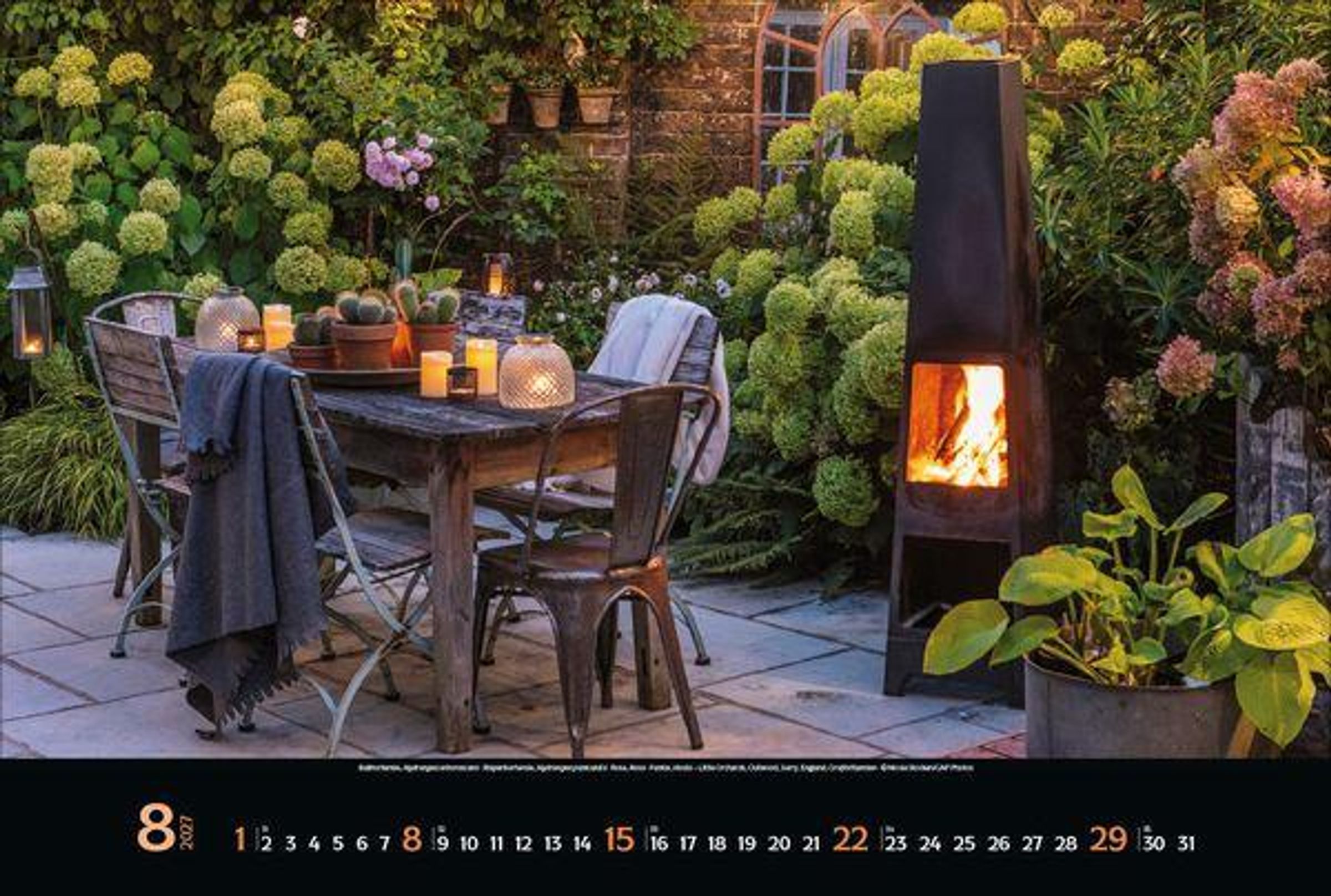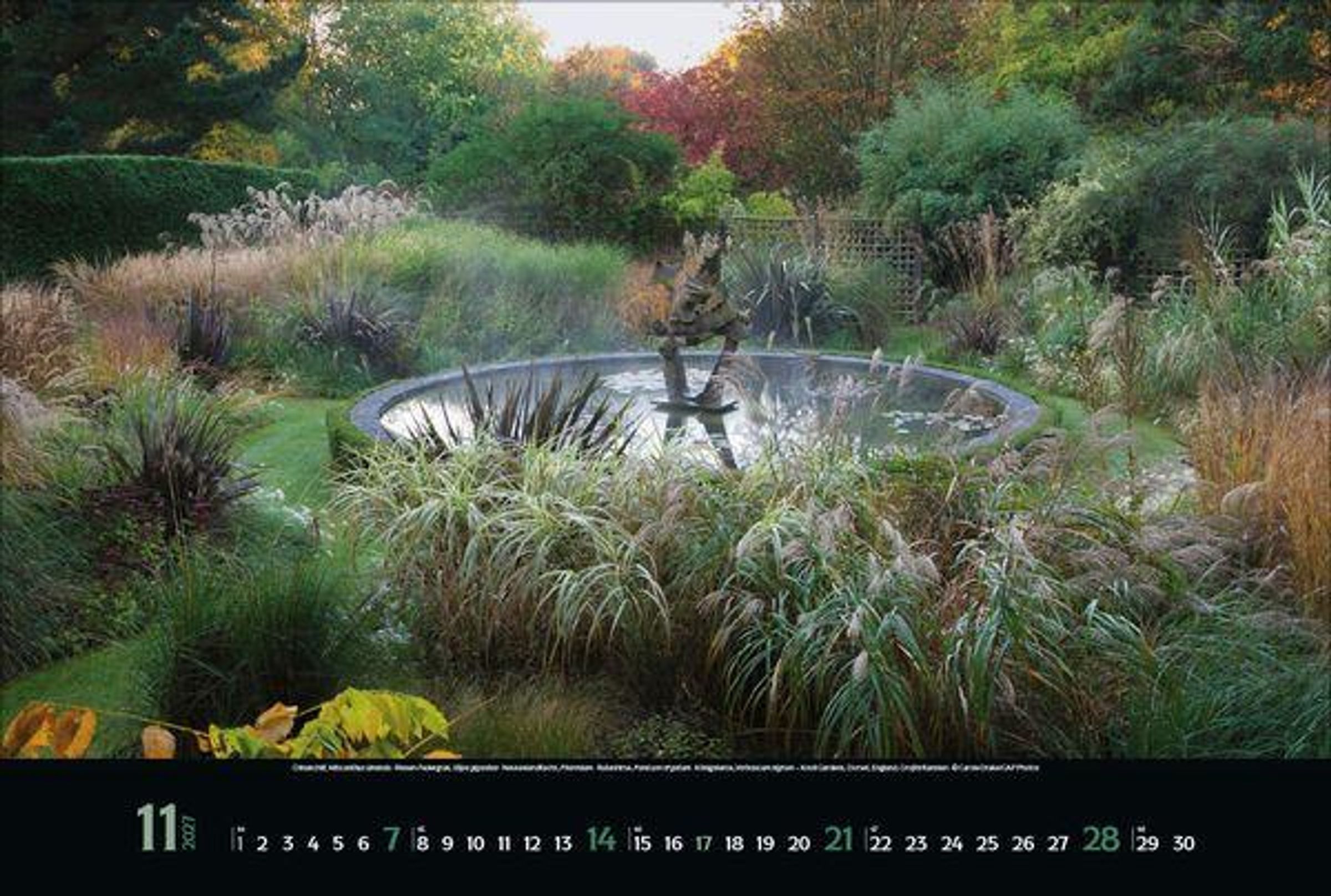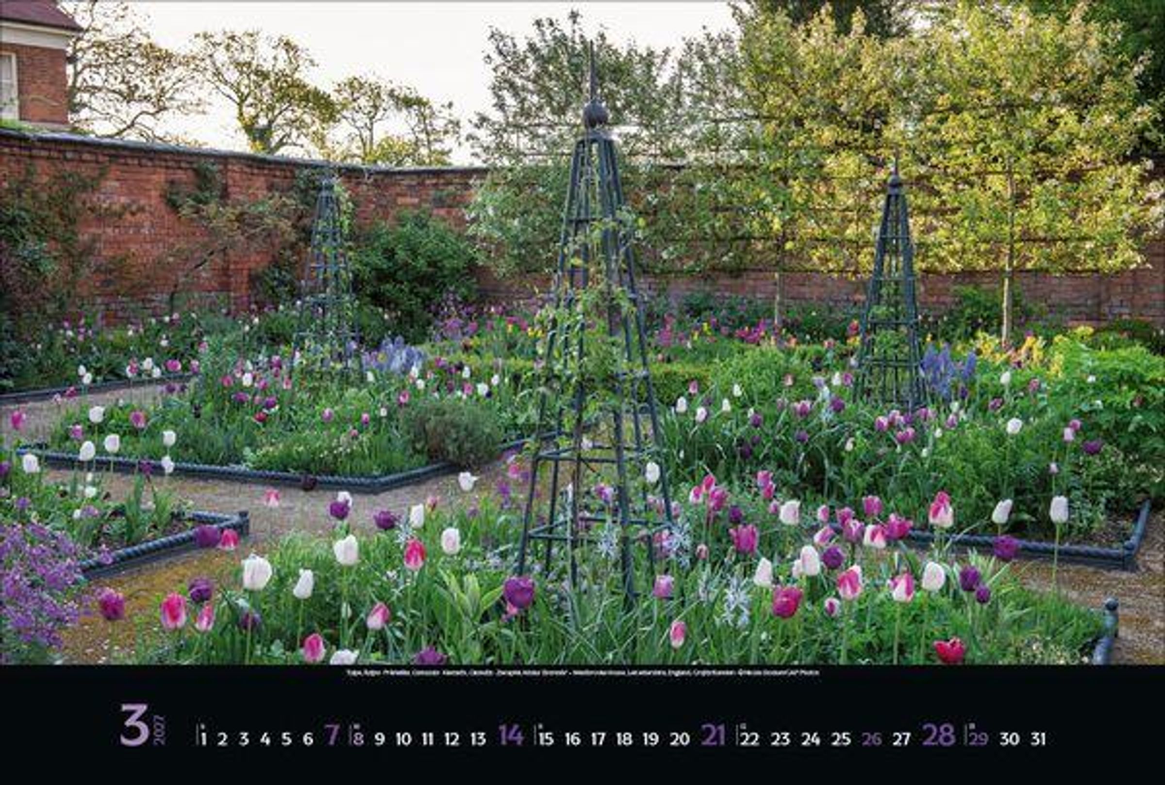 - Großer Foto-Wandkalender mit Bildern von verwunschenen Gärten. Edler schwarzer Hintergrund. PhotoArt Panorama Querformat: 58x39 cm.