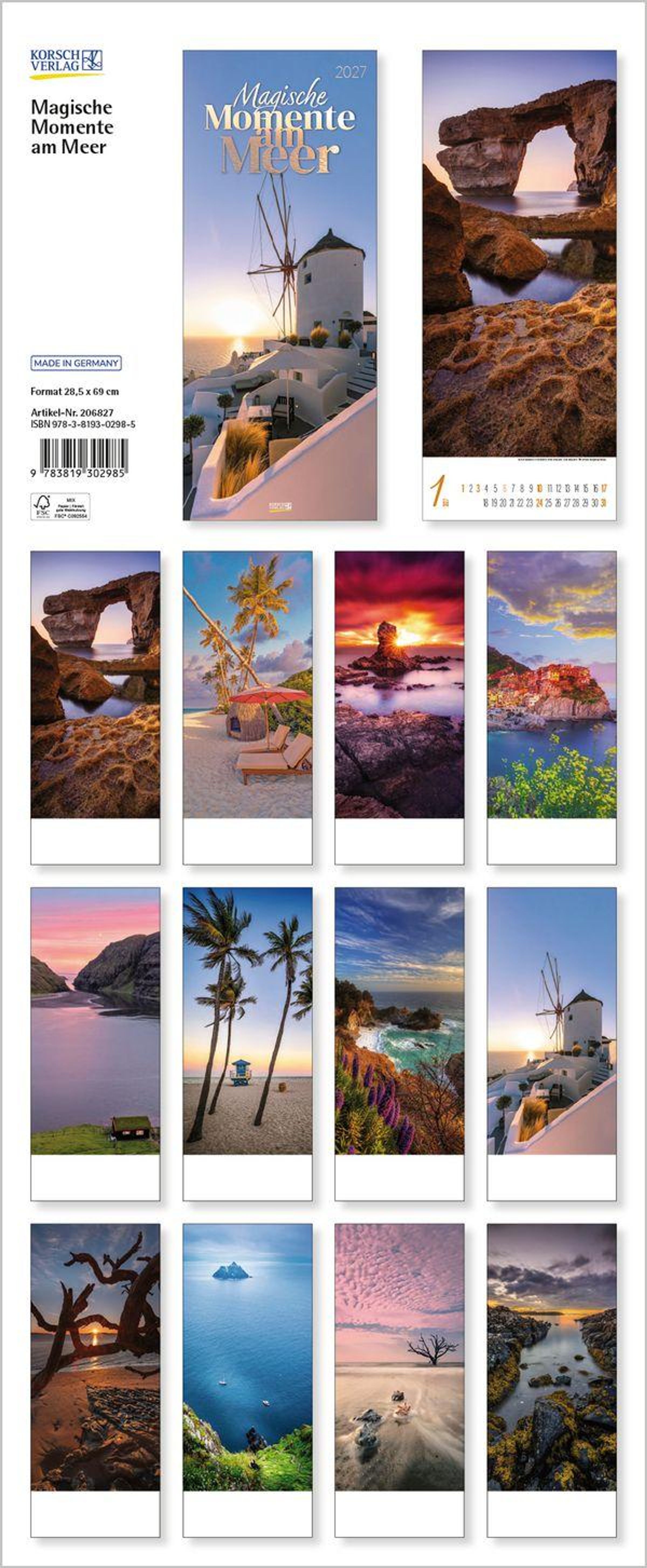 - Schmaler Wandkalender. Foto-Kunstkalender mit grandiosen Aufnahmen von Sehnsuchtsorten am Meer. PhotoArt Vertikal. 28,5 x 69 cm.