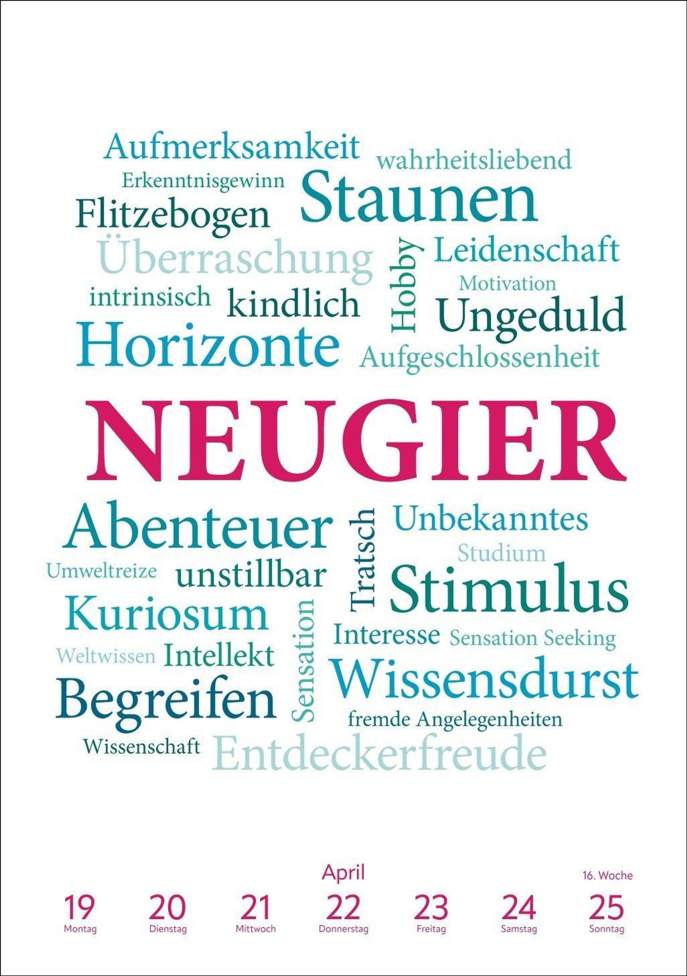- Mit Worten auf Gedankenreise gehen. Wochenkalender mit Wortwolken, die inspirieren. Motivationskalender im Format 25 x 35,5 cm mit grafisch gestalteten Inspirationen