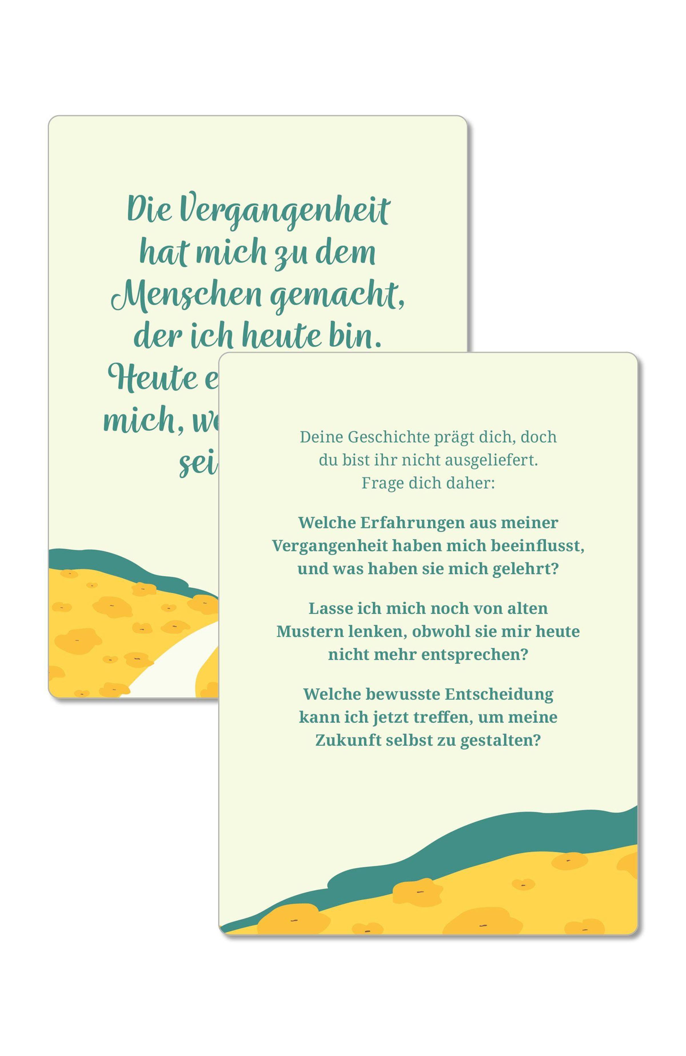 Das Lebensfreude-Kartenset ist eine Einladung, festgefahrene Verhaltensmuster und Denkblockaden aufzulösen. Motivationskarten, Affirmationen und einfache Übungen helfen dir, eine neue Selbstwirksamkeit zu trainieren und diese aktiv in dein Leben einfließen zu lassen. So kannst du dich spielerisch auf positive Erfahrungen freuen, Herausforderungen meistern und Krisen leichter überstehen.