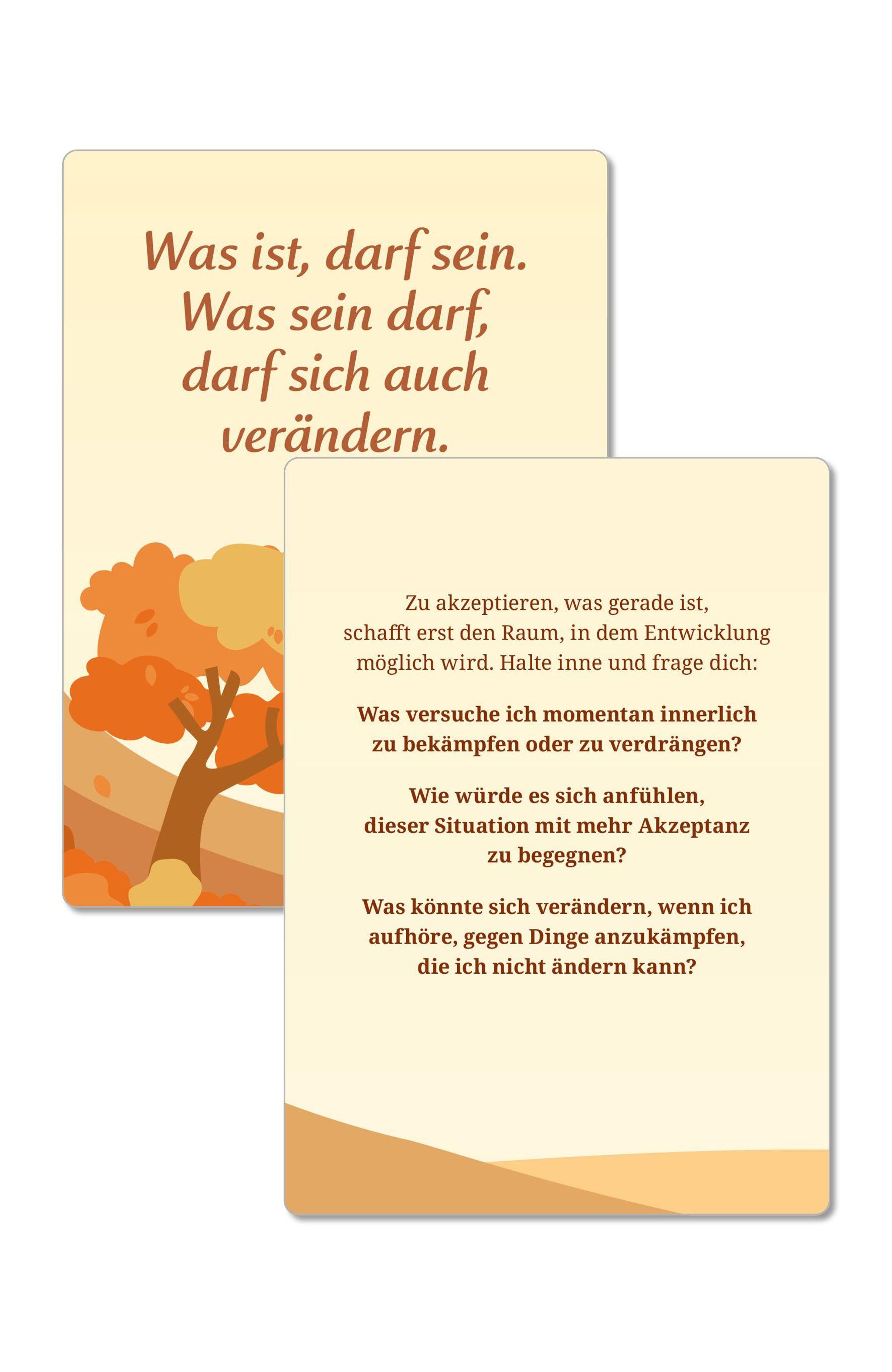 - 32 Karten mit Fragen und Impulsen, die dein Leben leichter machen. Karten mit Begleitheft in hochwertiger Stülpdeckelschachtel, mit Holz-Kartenhalter aus nachhaltiger Produktion