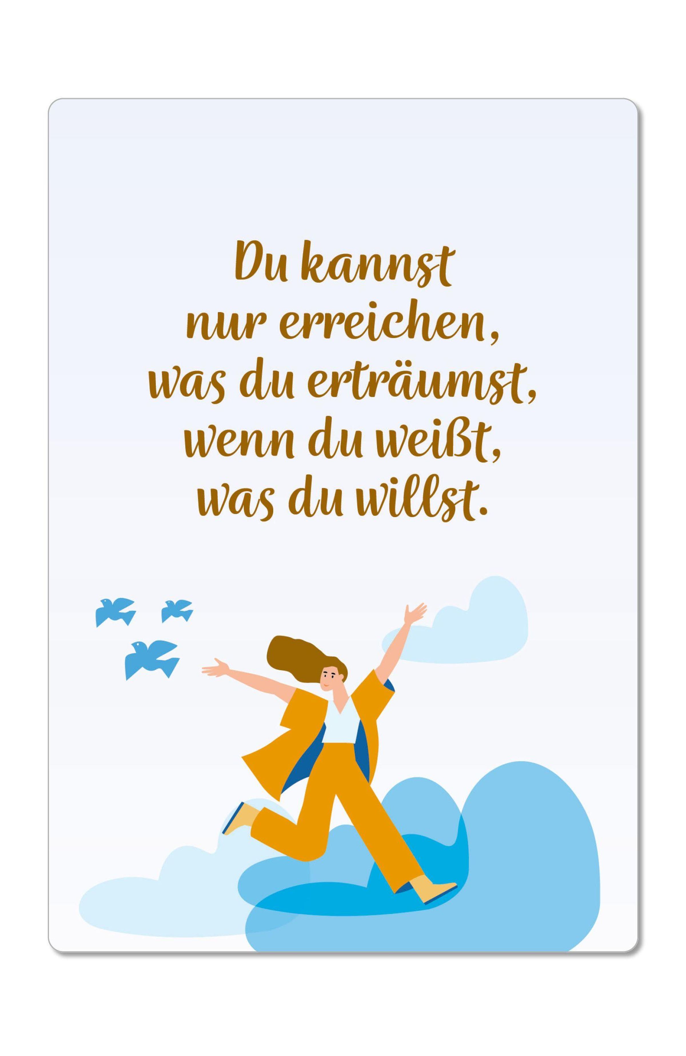 Ob als motivierende Tageskarte auf dem Schreibtisch, als dekorative Affirmationskarte zuhause oder als Einstimmung auf eine Coaching-Stunde oder ein Seminar: Die Lebensfreude-Karten stärken Körper, Geist und Seele!