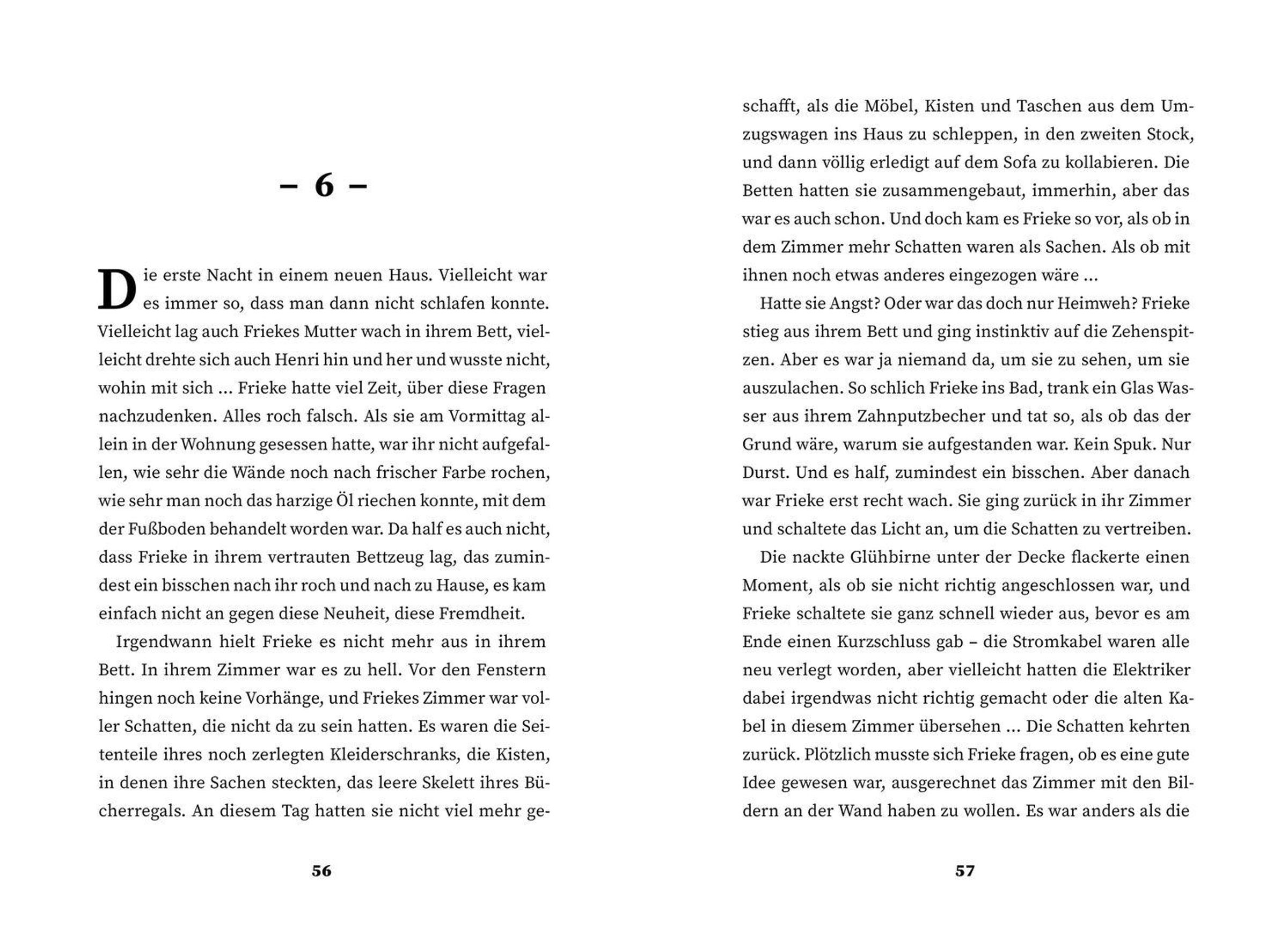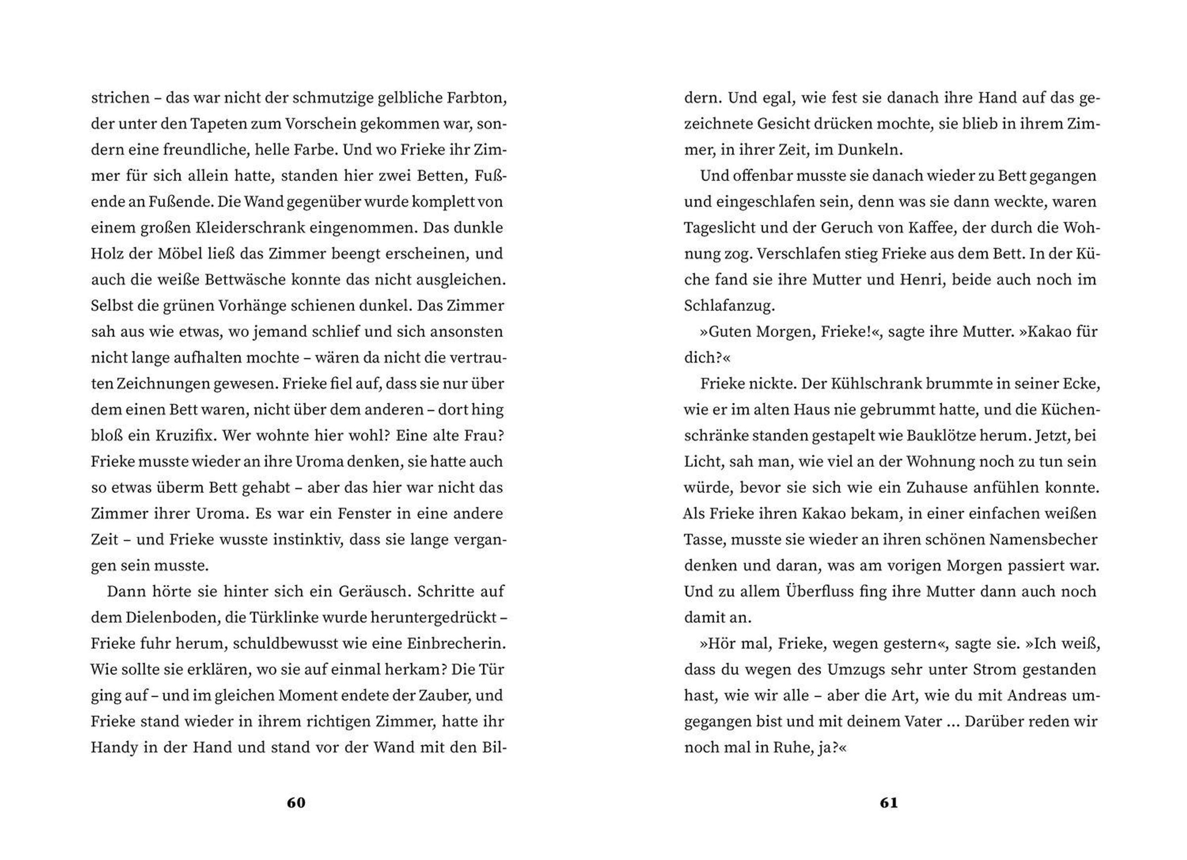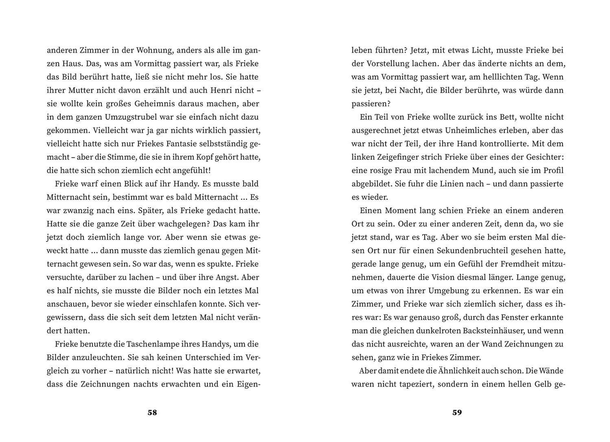 So lernt sie die gleichaltrige Ilsabeth kennen, die ihre Zeichnungen vor fast hundert Jahren an den Wänden verewigt hat. Die beiden Mädchen freunden sich an, und in Ilsabeths heiler Familie findet Frieke all das, was sie in der Gegenwart so sehr vermisst. Immer häufiger reist sie in die späten 1920er - aber nicht alles an dieser Zeit ist so toll, wie es Frieke zuerst erscheint. Und die Schatten der Vergangenheit reichen bis in ihre eigene Gegenwart ...