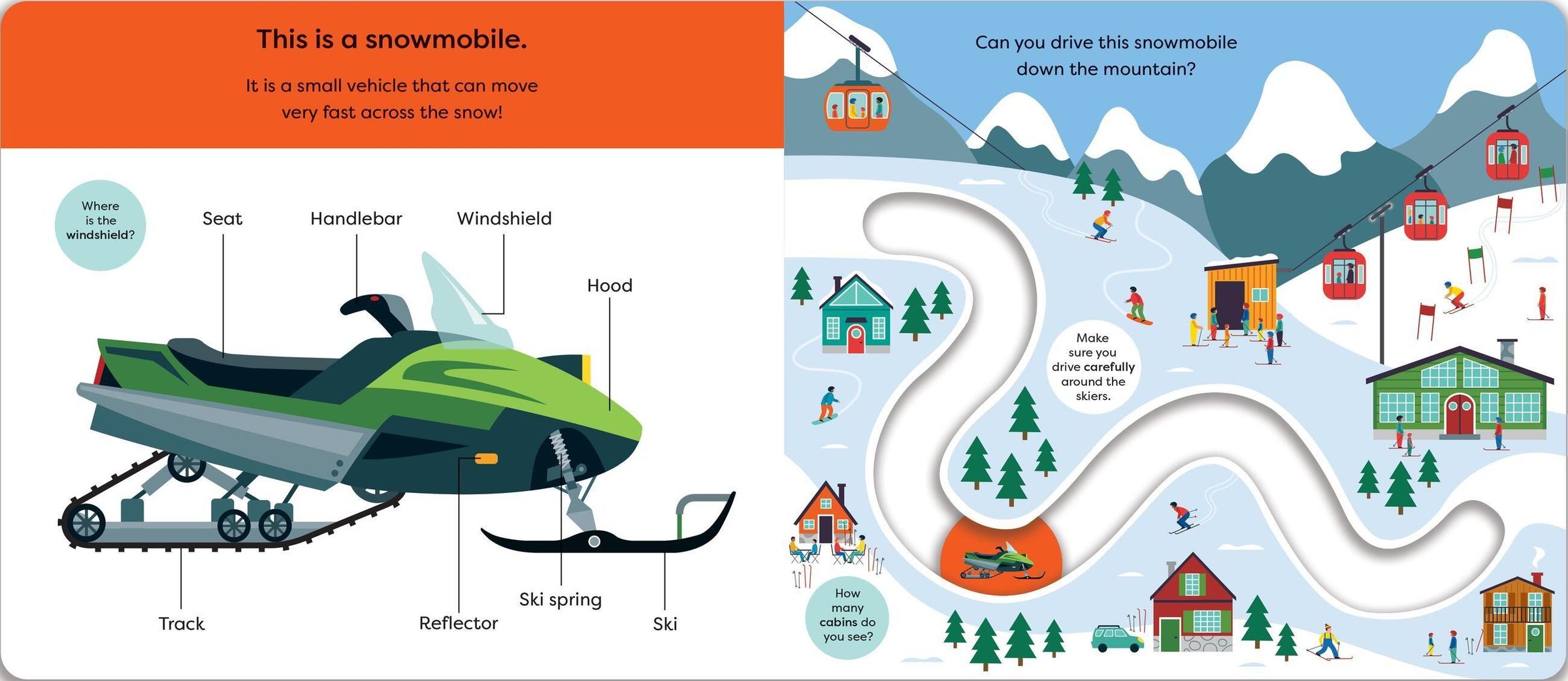 In this interactive series with easy-to-use, durable sliders, your toddler can steer a snowplow, a snowmobile, an icebreaker, and a bobsled! Perfect for helping toddlers develop hand-eye coordination, while also encouraging interaction with simple winter-themed first words, with clear diagrams, and helpful discussion prompts to learn through play.