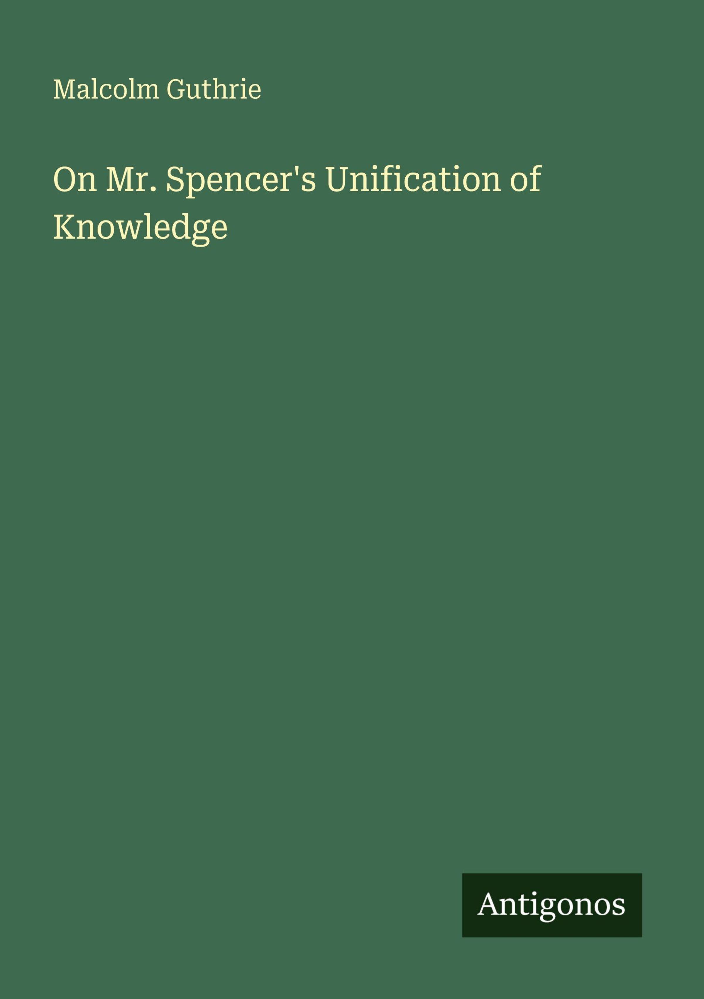 Malcolm Guthrie: On Mr. Spencer's Unification of Knowledge, Kartoniert / Broschiert