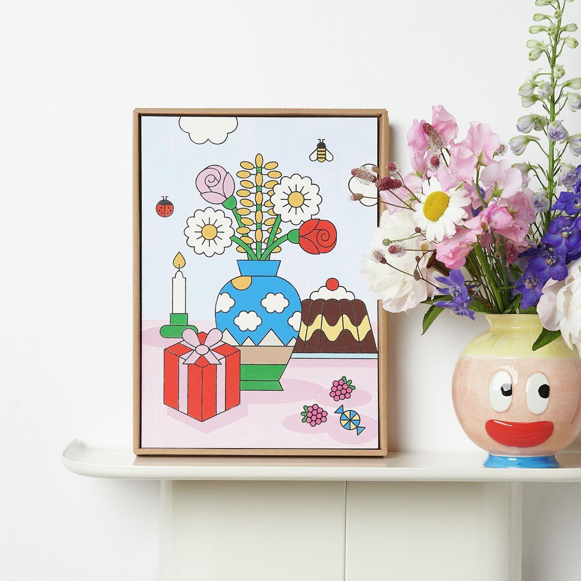 Das Malen-nach-Zahlen-Set umfasst einen Malkarton im Format 26 × 37 cm, 14 Acrylfarben in 16 Farbtöpfen à 3, 65 ml sowie drei Pinsel in den Größen 0, 2 und 4, verpackt in einer Papiertüte. Eine Malpalette, eine Vorlage und eine Anleitung unterstützen den strukturierten Arbeitsablauf von der Farbmischung bis zum letzten Pinselstrich. Nach dem Ausmalen lassen sich Deckel und Karton als Rahmen weiterverwenden und dienen der Präsentation des fertigen Motivs. Die Verpackung misst 28 × 39 × 3 cm und ermöglicht eine kompakte Aufbewahrung des kompletten Inhalts.