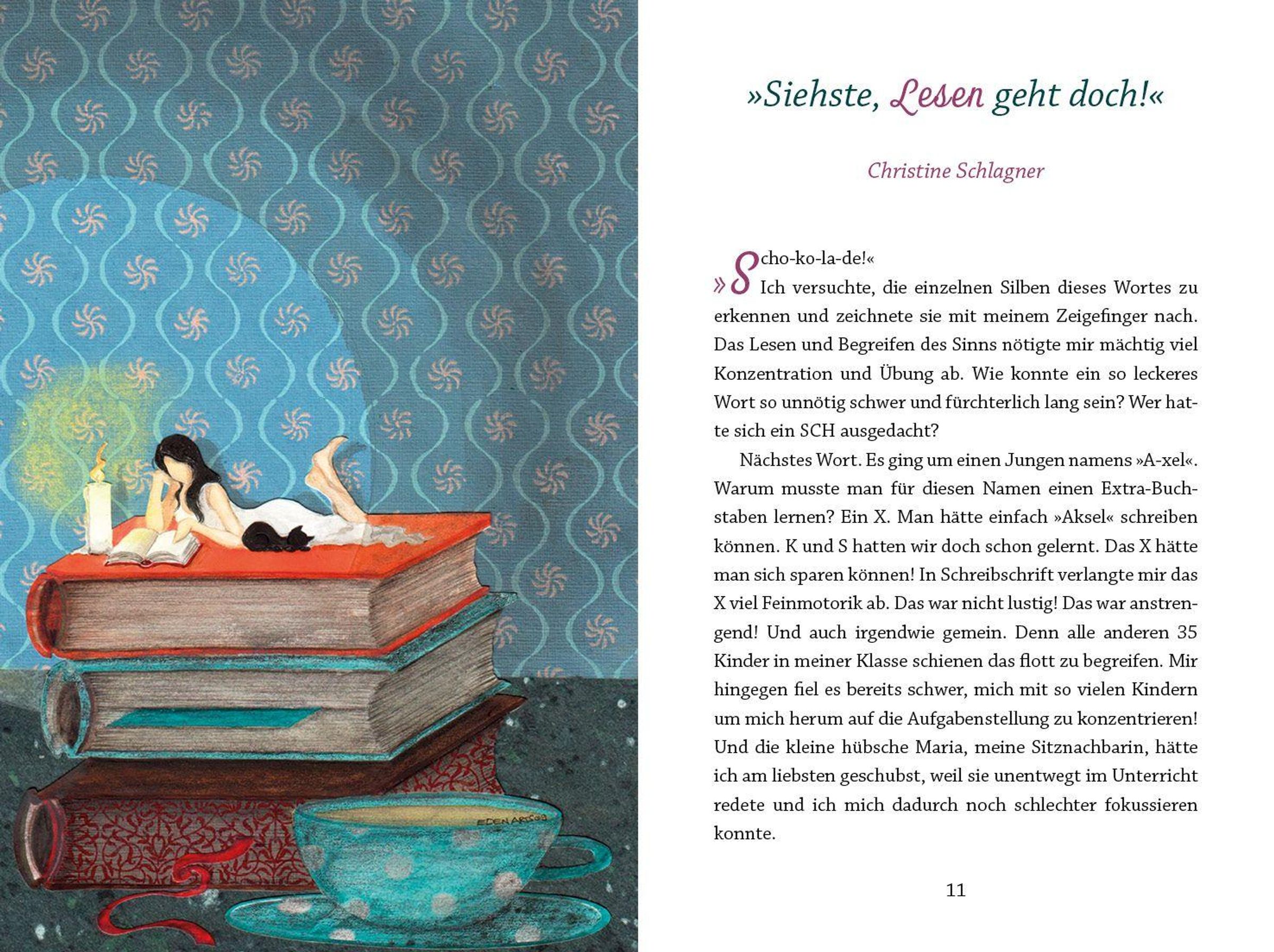 Lesen verändert Leben - still, tief und manchmal nachhaltig. Dieses besondere Geschenkbuch bringt Kunst und persönliche Erlebnisse auf berührende Weise zusammen. Die Künstlerin Katja Hogh hat sich von dem klassischen Motiv der lesenden Frau mit Katze inspirieren lassen und atmosphärische Bilder gemalt, die Ruhe, Innenschau und Tiefe ausstrahlen. Dazu erzählen 11 Autorinnen persönliche Geschichten über das Lesen: ehrlich, bewegend, voller Hoffnung und Glauben. Sie berichten davon, wie ein einzelner Satz den Lebensweg veränderte, ein Buch mitten ins Herz sprach oder das Lesen in einer Krise zur Kraftquelle wurde. Zwischen den Geschichten laden inspirierende Zitate über die Bedeutung des Lesens zum Innehalten und Nachdenken ein.