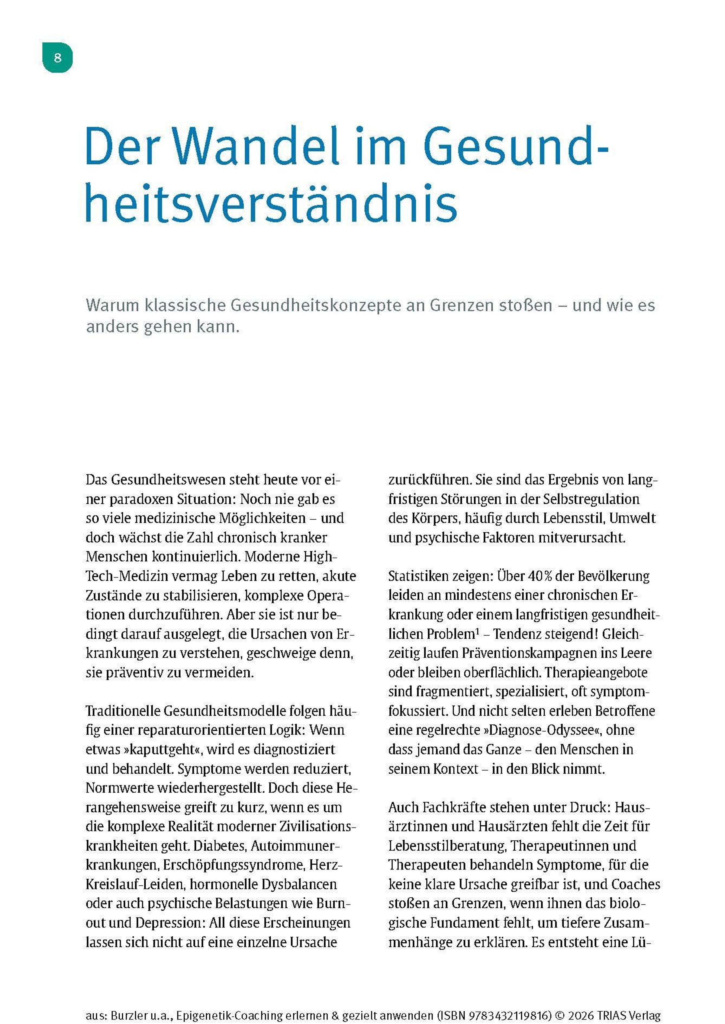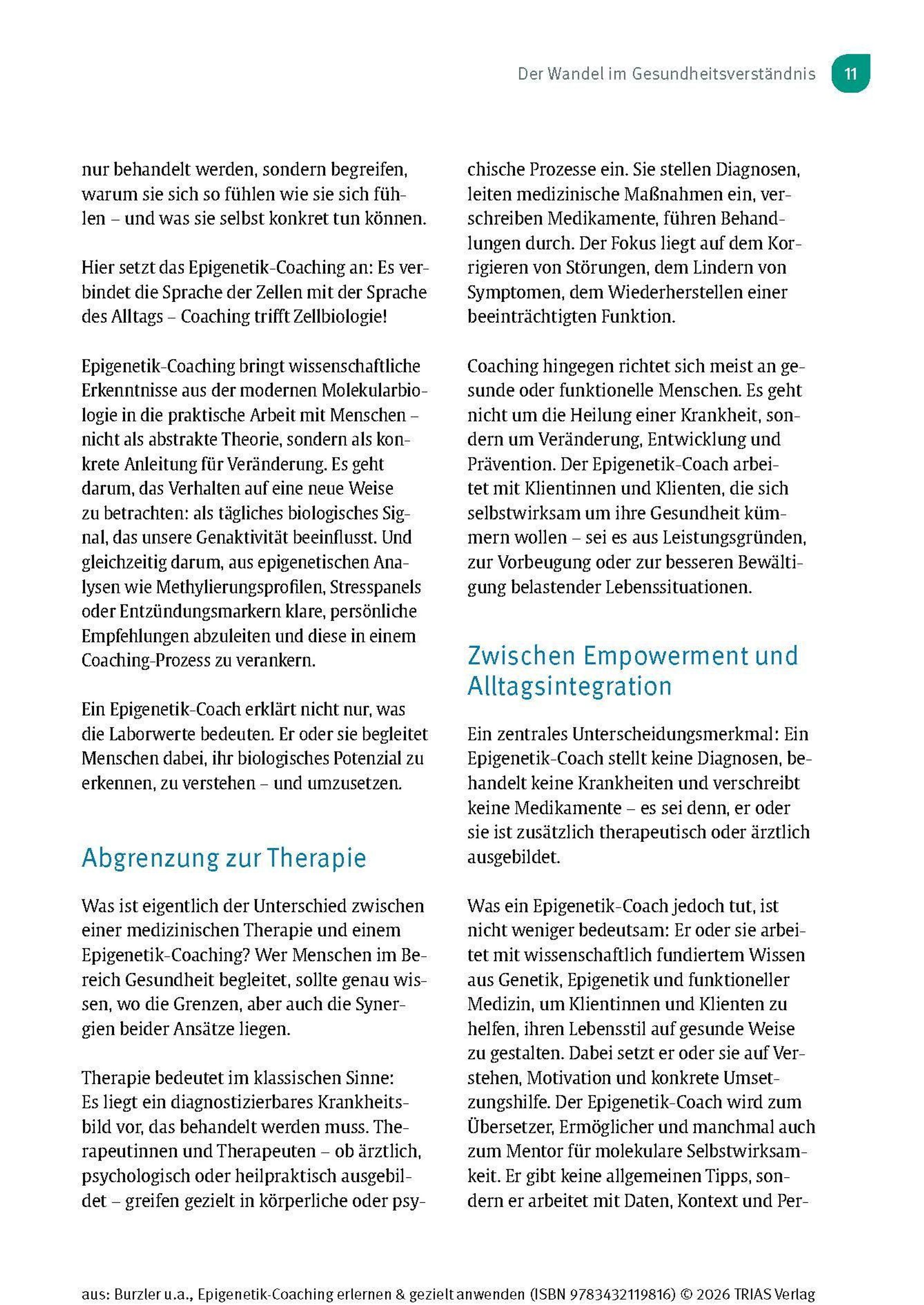 Die Epigenetik verändert unser Verständnis von Gesundheit grundlegend. Sie zeigt, dass Gene nicht unser Schicksal sind - sondern dynamisch auf Umwelt, Lebensstil und den Umgang mit unseren gemachten Erfahrungen reagieren. Dieses Handbuch von den Pionieren des Epigenetik-Coachings - Dr. Manuel Burzler und Timo Janisch - ist die Grundlage, um sich epigenetisches Wissen anzueignen und gezielt anzuwenden. Für alle Interessierten, als Begleiter durch die Epigenetik-Ausbildung oder für Therapeuten in der Praxis.