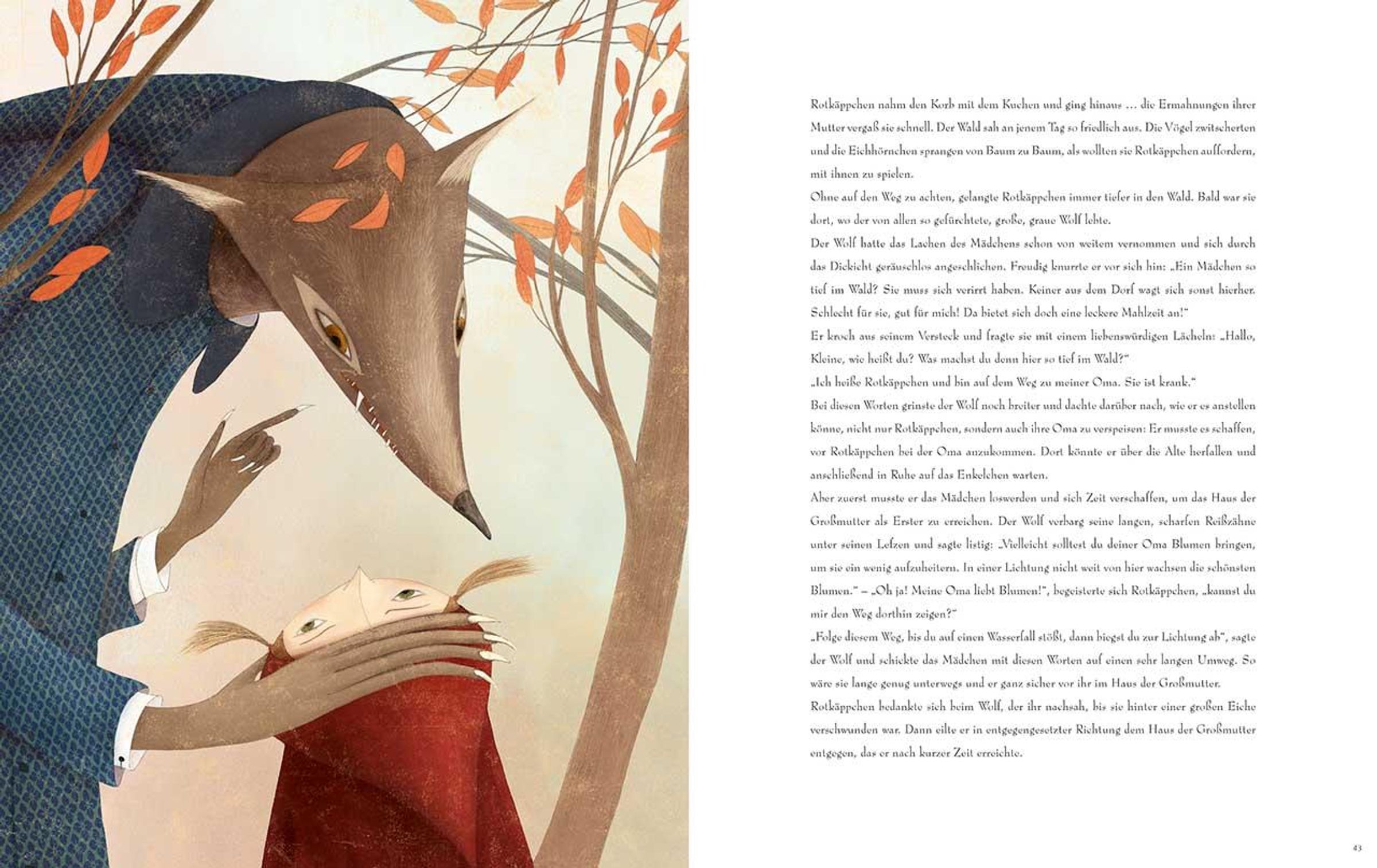 Seit über 200 Jahren bezaubern Grimms Märchen Groß und Klein. Sie sind Weltliteratur, die in jede Kinderbibliothek gehört. Das Gute siegt, das Böse wird bestraft. Entdecken Sie jetzt die geliebten klassischen Geschichten - von Manuela Adreani erfüllt mit neuem Leben und moderner Gestaltung. Die feinsinnigen Illustrationen öffnen Welten und beflügeln die Fantasie eines jeden Kindes.