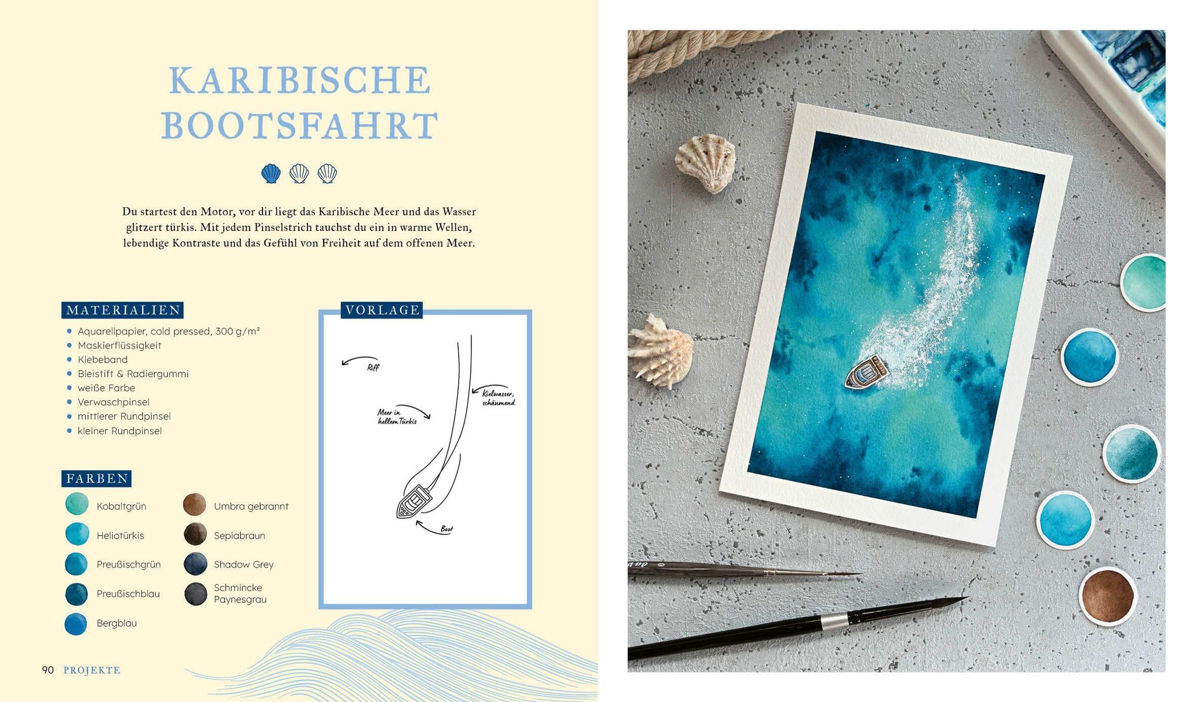 - 20 maritime Motive Step by Step in Aquarell malen | Strand, Meerestiere, Sonnenuntergang | Mit wichtigen Grundlagen-Techniken | Mit Vorlagen zum direkten Losmalen